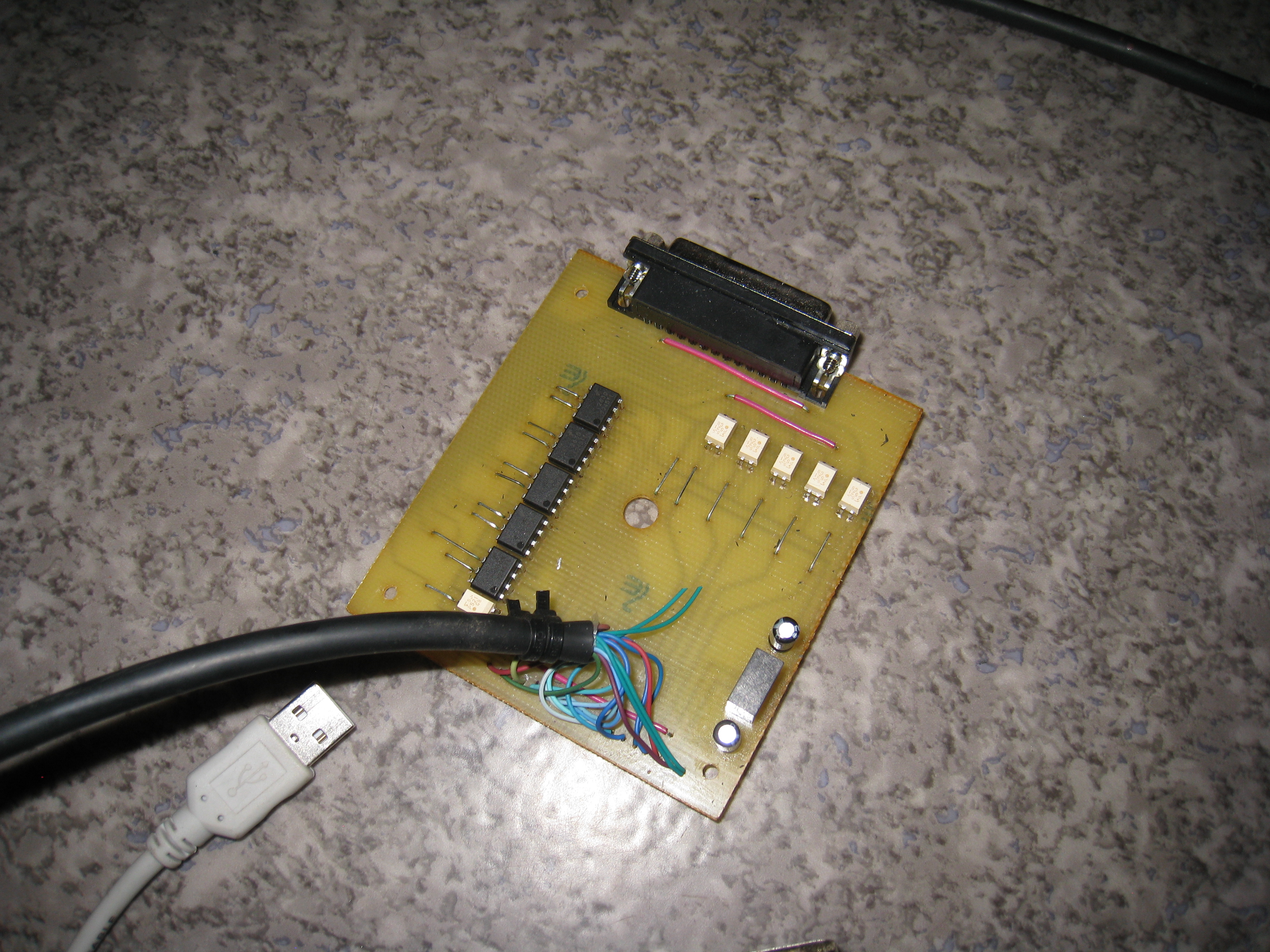 Между компом и платой какая то непонятная коробочка, на сайте завода есть похожая и является ЮСБ контроллером, для которого нужен свой плагин в МАЧ3. Разобрал свою коробочку и мои скромные познания в электронике подсказывают, что это такая опторазвязка LPT порта