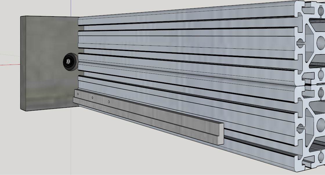 Добавил профиль 160/80, чет фигня получается. Если брать расстояние между рельсом и профилем 30 мм, то расстояние опоры винта- профиль = 12,7 мм.