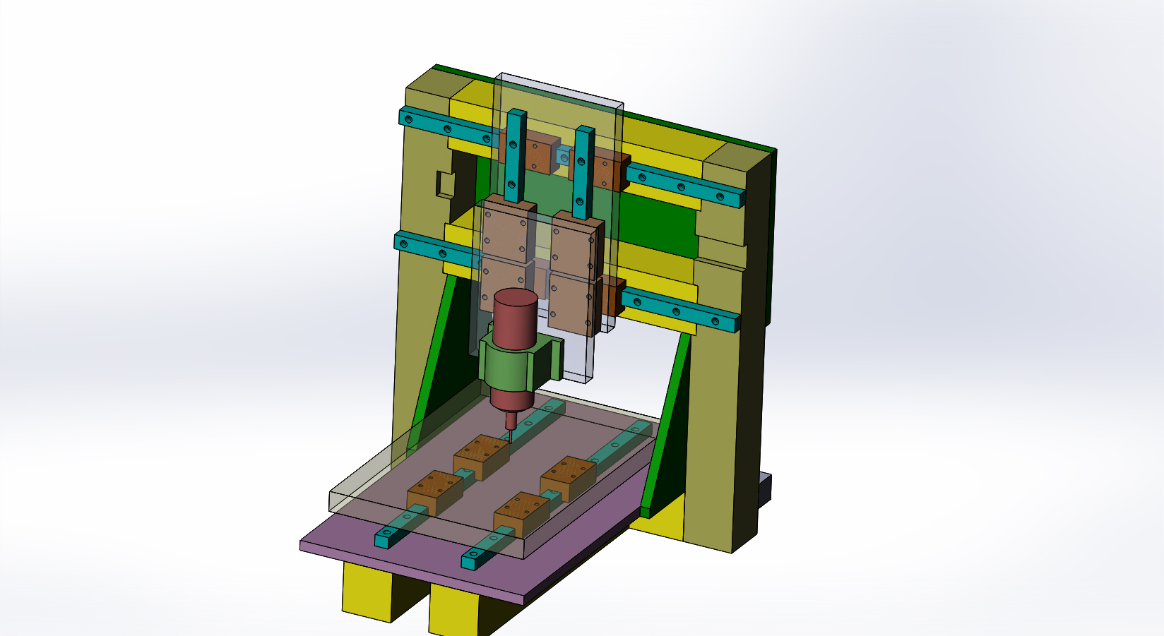 на боковые стойки портала можно приварить косынки, фрезернуть их под опорные плоскости, и прикрутить к основе, которую сделать лесенкой.