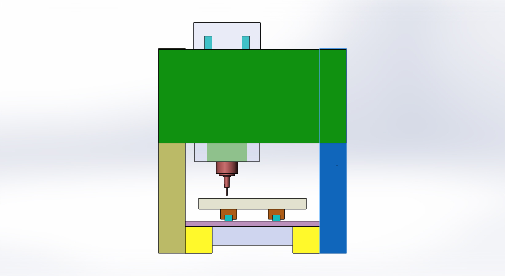 Ребра под станиной 10мм. Зеленые косынки на портале 20мм.
