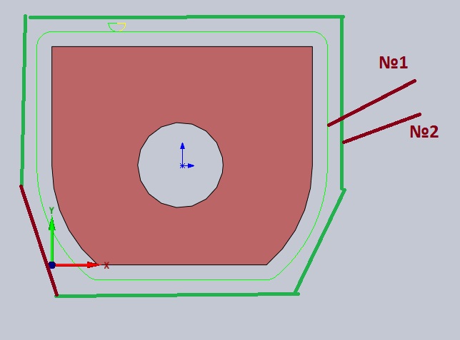Если из толстого материала (толщиной 45мм) нужно вырезать такую деталь. Но деталь находится в центре заготовки, нет возможности работать с краев. Для отвода стружки делал по 2 прохода. Как сделать такое в СолидКаме не рисуя еще траекторию