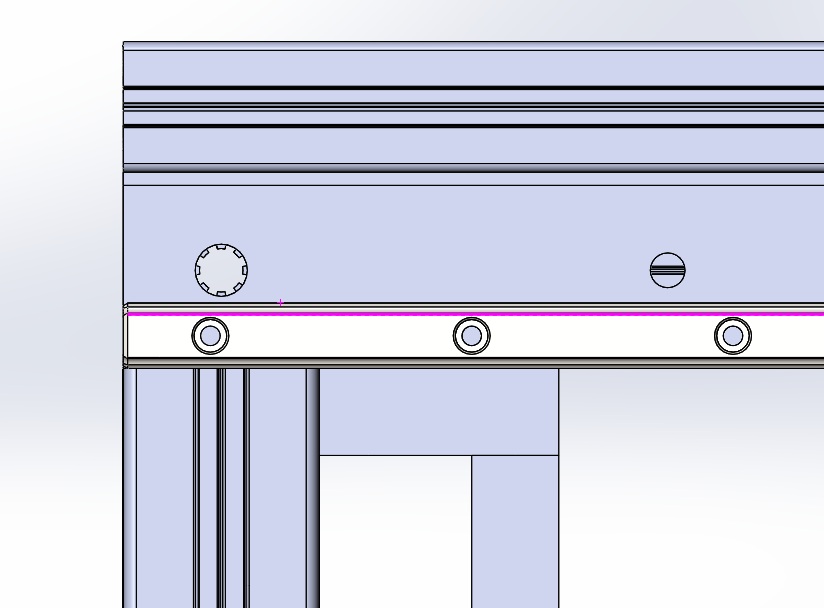 Одним из вариантов подумал, что, можно попробовать сместить линейку вниз, и когда будет дополнительная проставочная полоска, закручивать болты от линейки в неё будет проще, но будет ли это нормально?