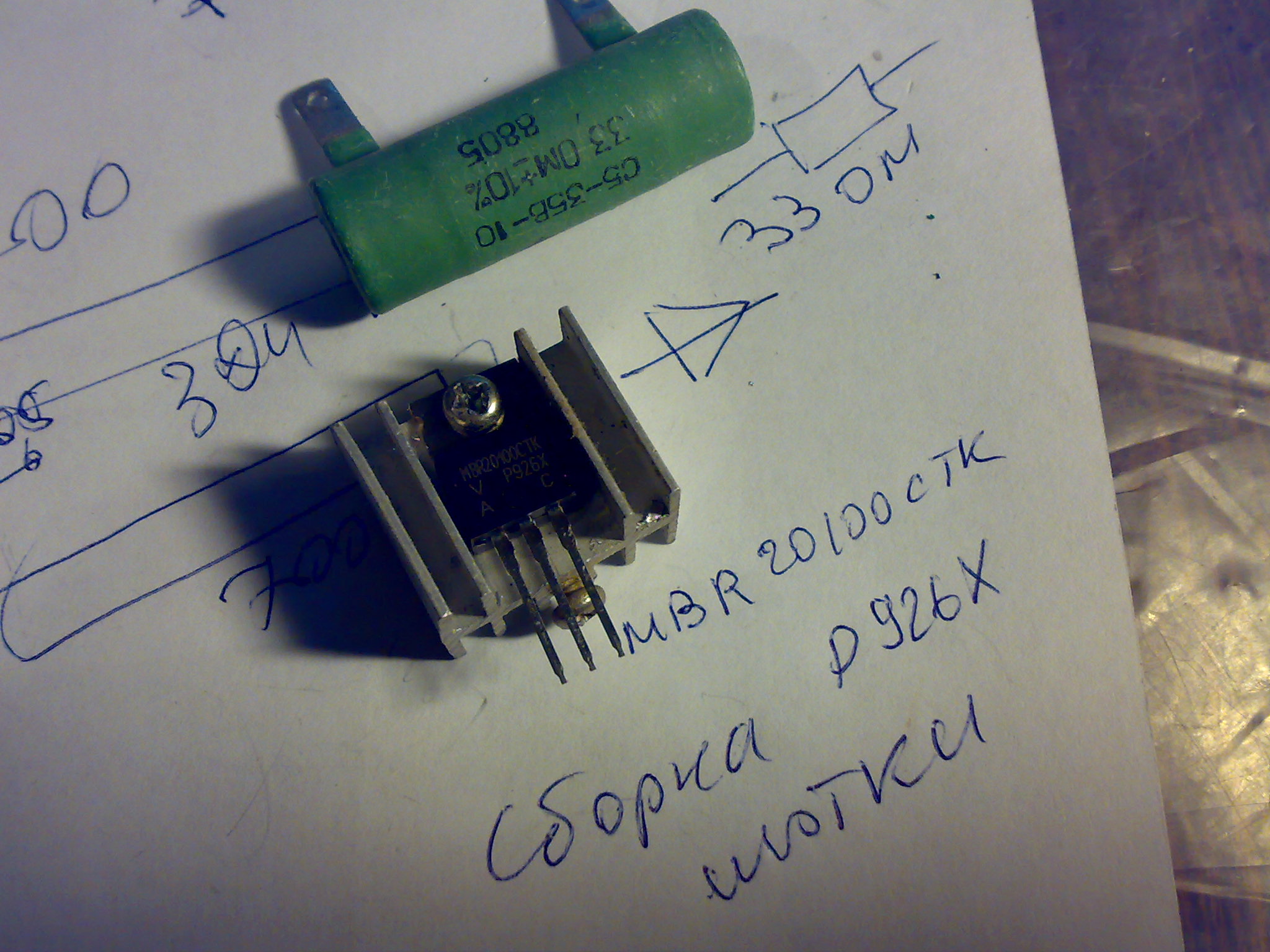 хочу собрать 2 схемки первую и третью и вот порылся в закромах своих , вот такие диоды нашел и сопотивление. одно на 35 ват. второе на 25.