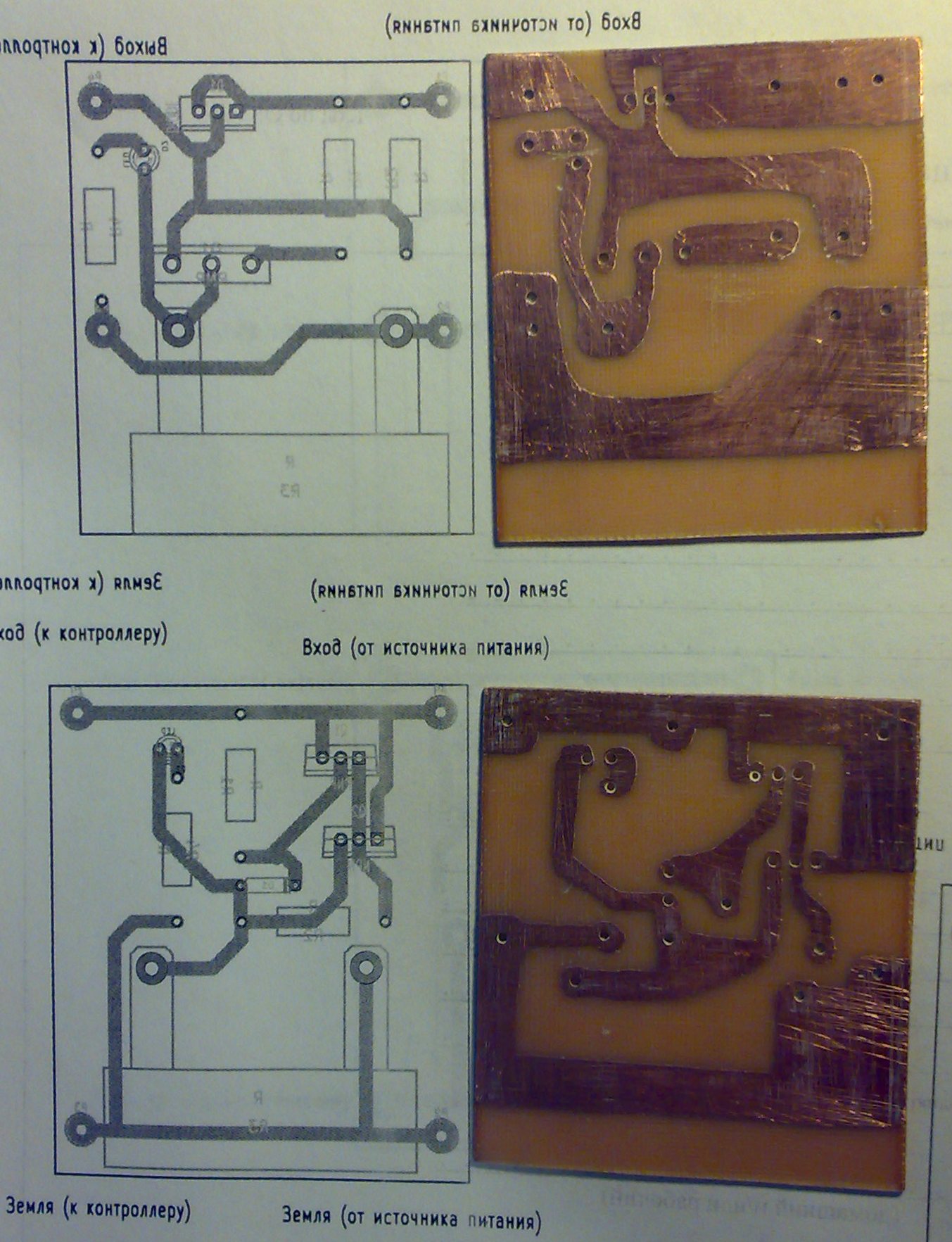даже два. по 1 и 3 схеме. Печатные платы рисовал Петр. я бы сам токого нарисовал . темболее не зная выводов на транзисторах и подобных детальках. только еще не припоял свето диод. незнаю куда плюс куда минус (анод, катод) .