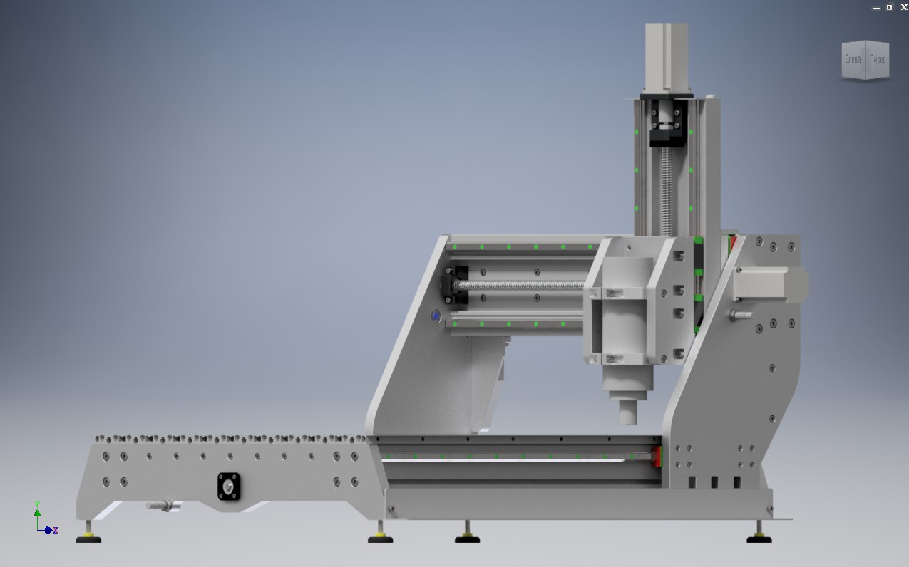 Переделал ось Z, увеличил немного ход, чтобы шпиндель поднимался выше, переделал крепление двигателя оси Y, поставил индуктивные датчики на X и Y, добавил виброопоры, закрепил уголок для гибкого кабель-канала. Фото "ЧПУ - низ" - староватое, но думаю суть будет ясна, как сделано крепление.