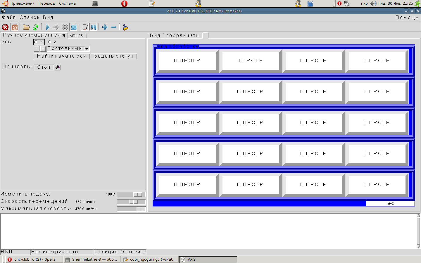 да нашел этот файликnkp писал(а):Этот архив выкладывал по просьбе из-за панельки pyVCP.Файлы в папке ngcgui - каша -все в т.с. в процессе...