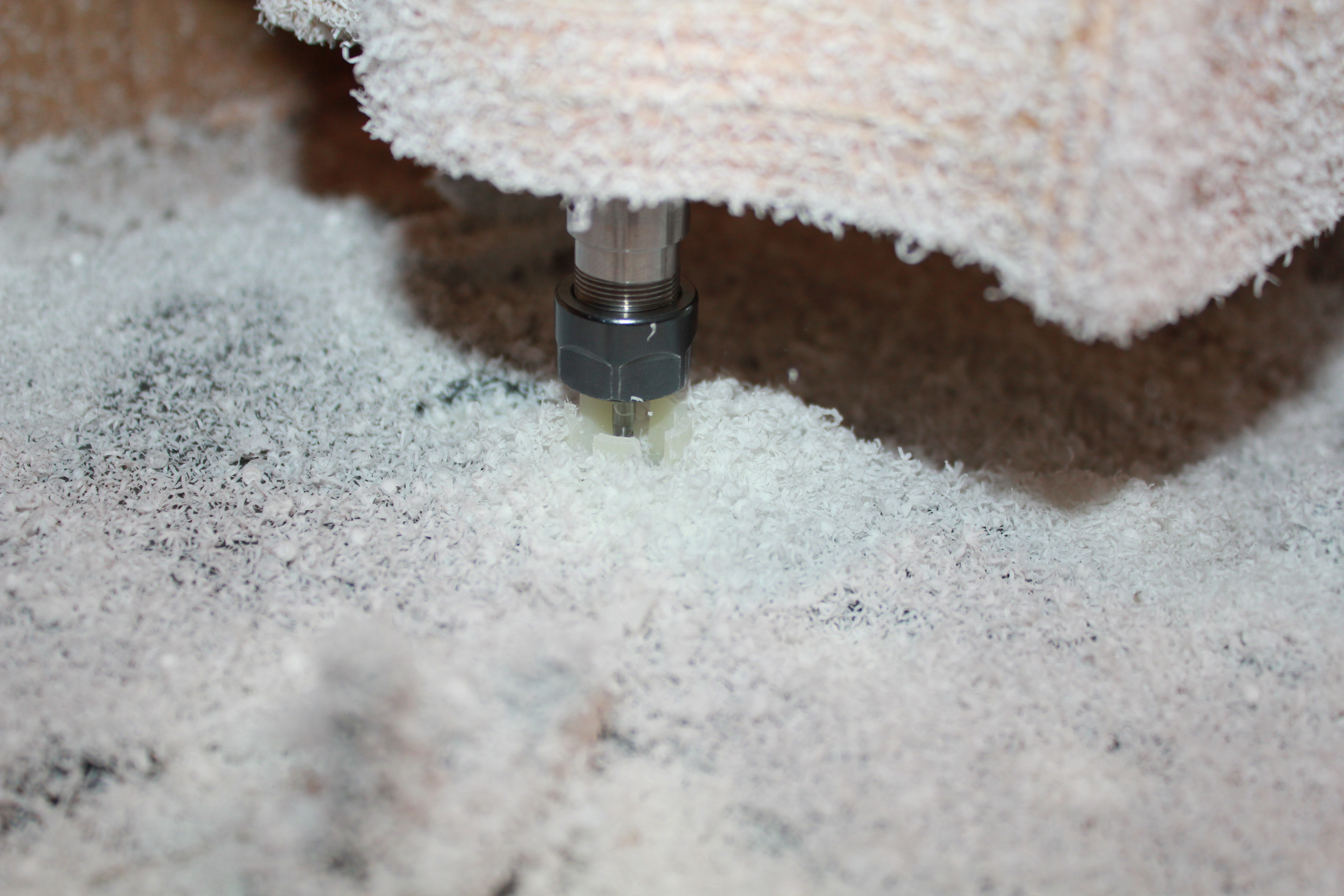 Вот ещё непонятный момент - смотрю ролики по станкам - там фанеру 8 мм, чуть ли, не за один проход пилят. Тут 0,5 мм - за проход снимает нормально. 1 мм уже очень туго идет - и дело даже не в движках подачи - они могут протянуть на максимальной скорости, похоже шпиндель не справляется - коллекторный, 500 ватт, 12 000 оборотов - постоянного тока с регулировкой оборотов.