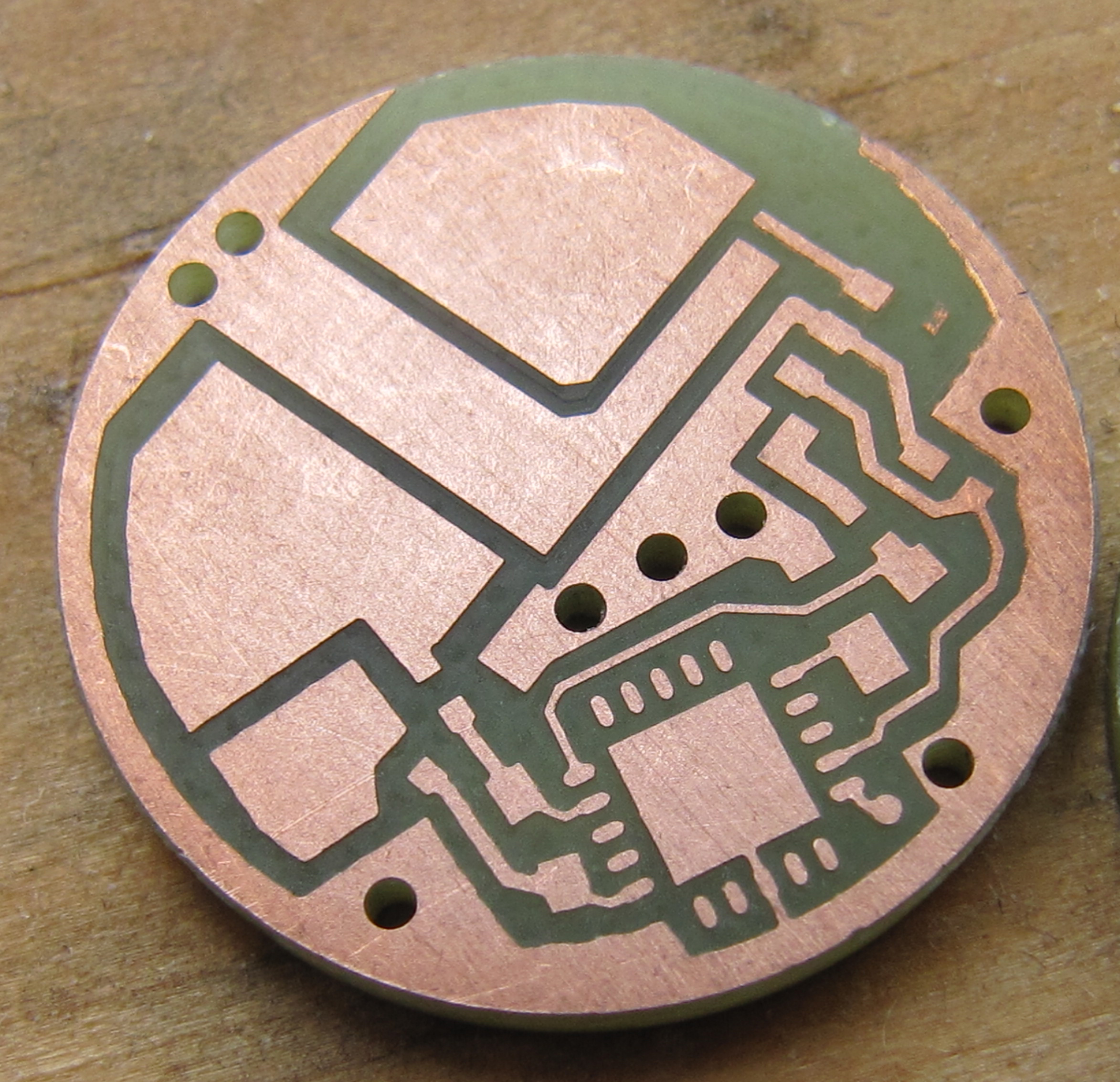 странно, может быть я не вижу того, чего видите вы - какие-то дефекты и т.д. под лупой рассматривал, никаких дефектов дорожек нет, все идеально ровными краями, на счет быстрее, мелкие платы делаются быстрее чем лут, эта круглая плата в количестве 4шт пилилась в течении примерно 25 минут без какого либо напряга, возня с банками, печатание и травление у меня занимало всегда намного больше времени - час-полтора, вот если делать большую плату, 10-15см, то лут может быть быстрее (в зависимости от сложности платы), но не на порядок, в прочем если обрабатывать 10х15см плату 0.1 гравером выбирая у половины платы медь, то может и будет на порядок, но ведь это не наш путь ;)