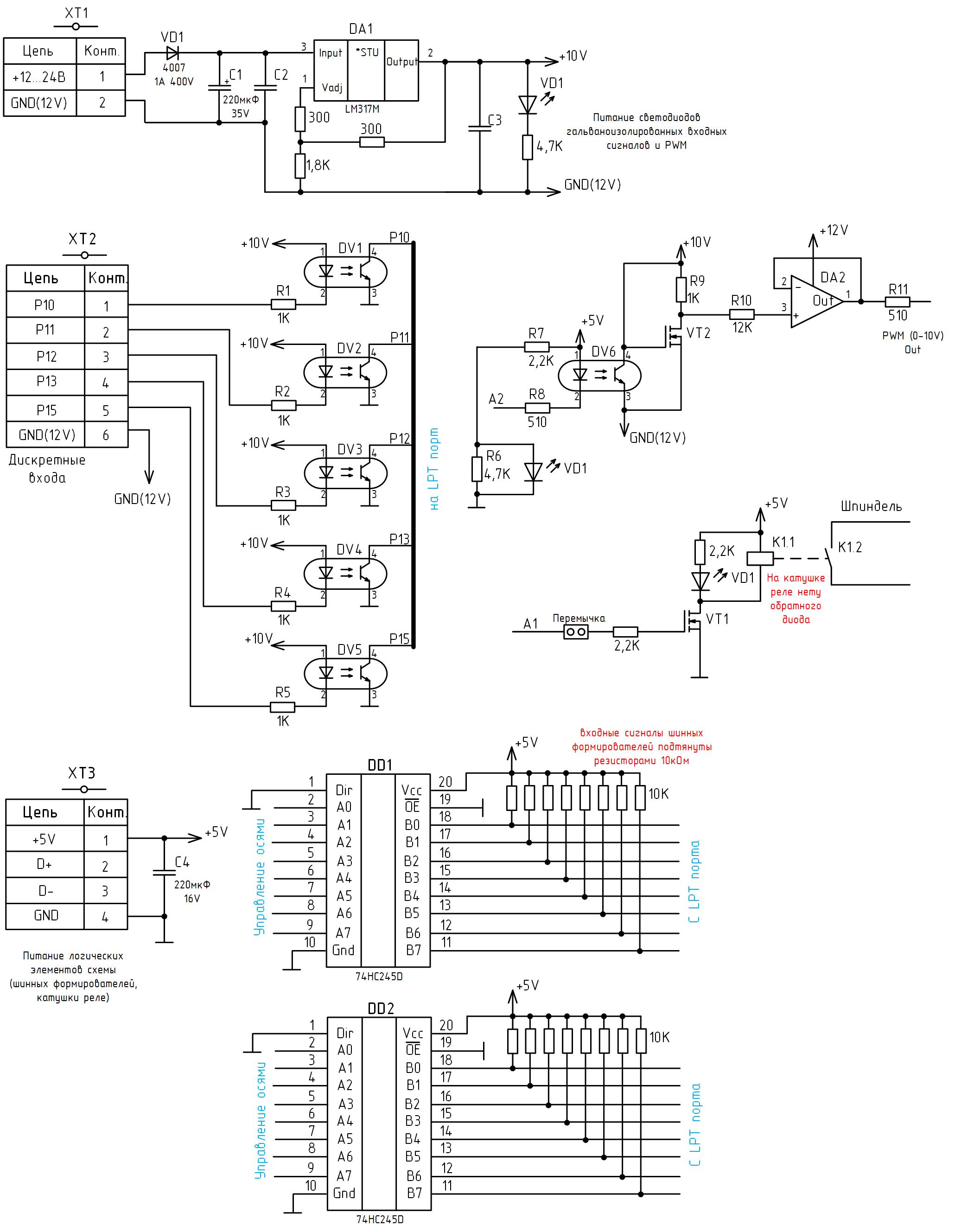 Частично восстановил схему интерфейсной платы 5 axis board Interface