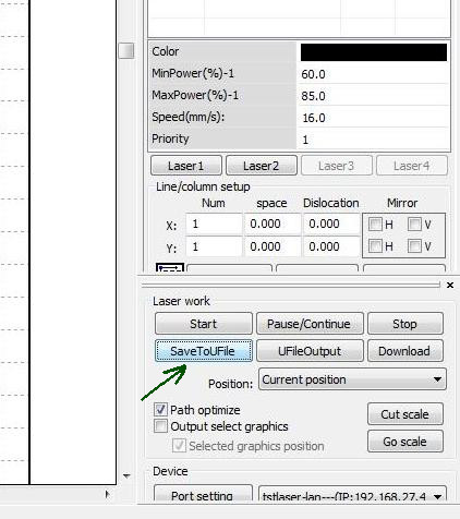 При прямом соединении через usb в программе rdworks можно загрузить (download) в память контроллера , затем вывести на резку с панели.