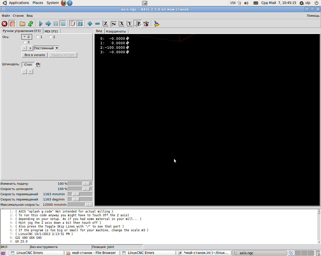 Обсуждение установки, настройки и использования LinuxCNC. Вопросы по Gкоду.