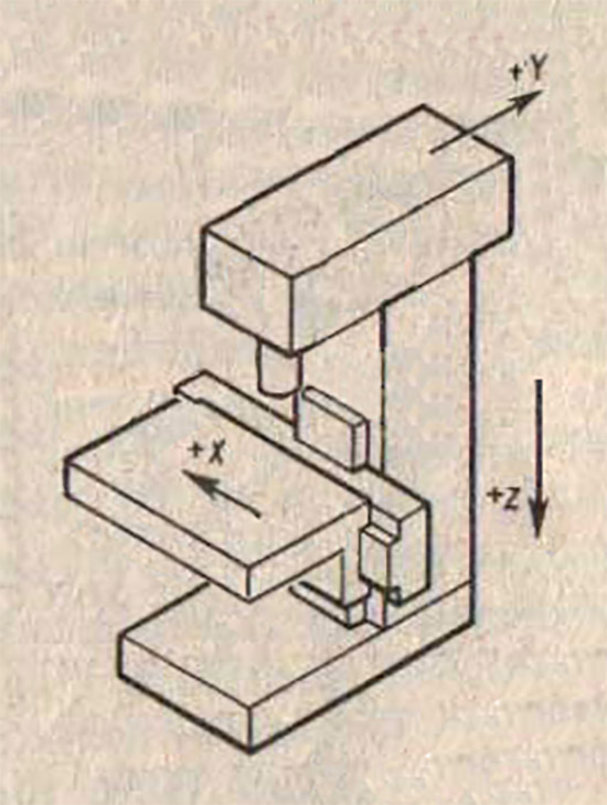 А направления осей определяется по перемещениям шпинделя. Т.е. думать надо, что едет шпиндель относительно стола.