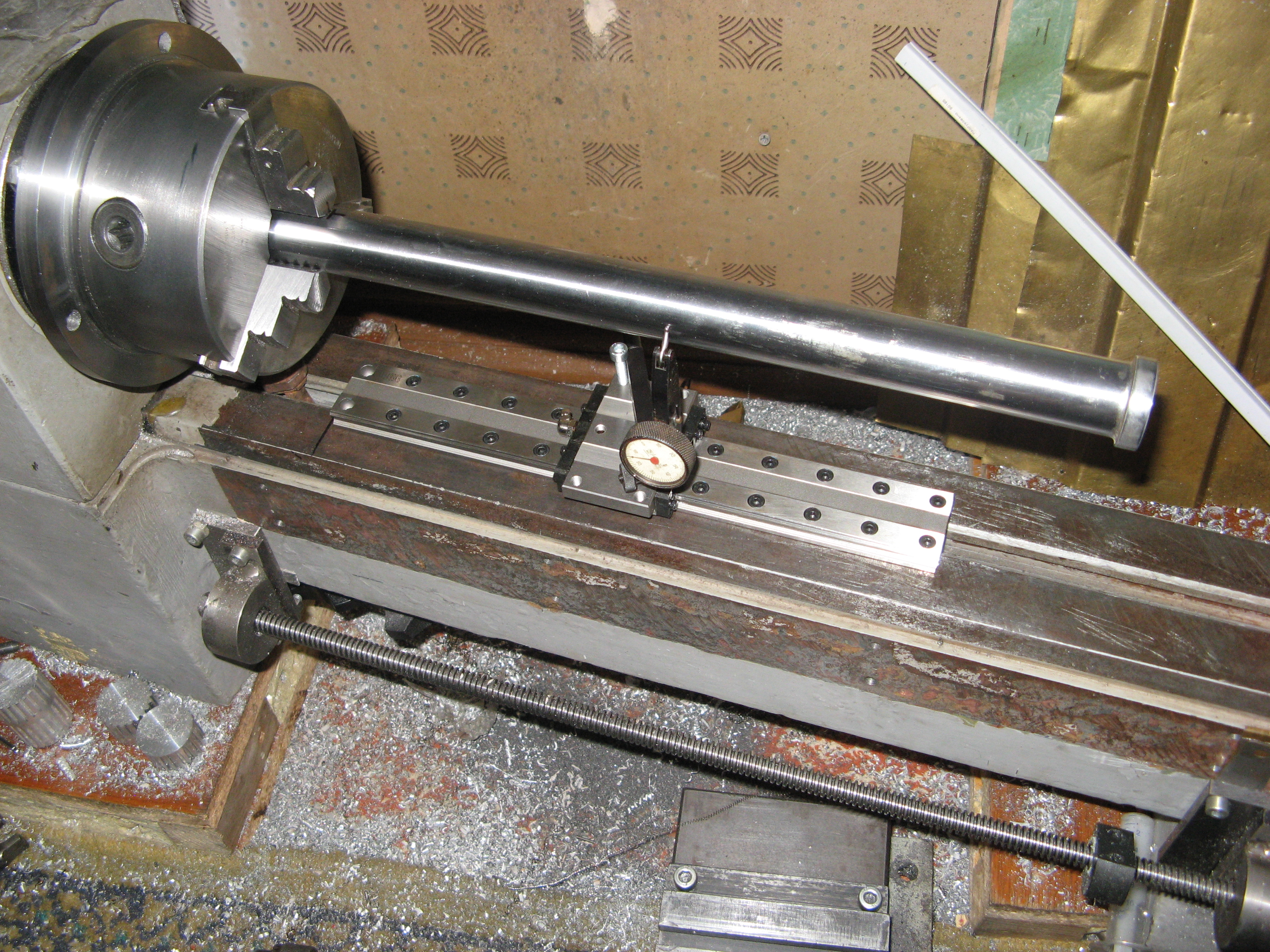 кровушки попил паз в станине - сверло и метчик уводило и ломало несколько раз. сейчас рельсу выставил при помощи штока. не знаю насколько он ровный - поверочной оправки у меня нет, впрочем как и конуса в шпинделе (начисто так и не расточил - не было надобности)
