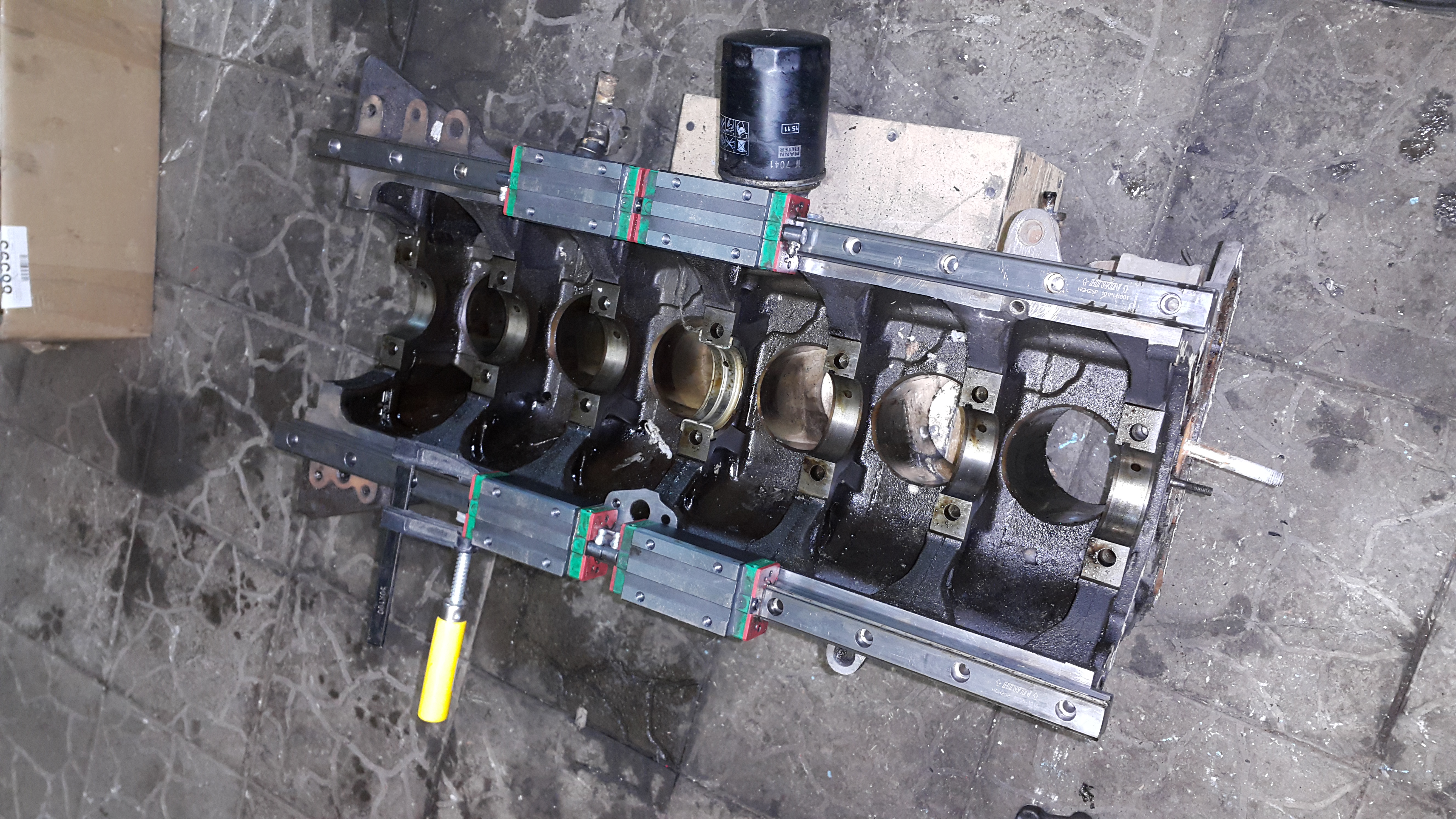 Рельсы ложатся плотненько. Мяса под болты в блоке полно. На посадки коренных постелей легко закрепятся опоры под винт и двигатель.