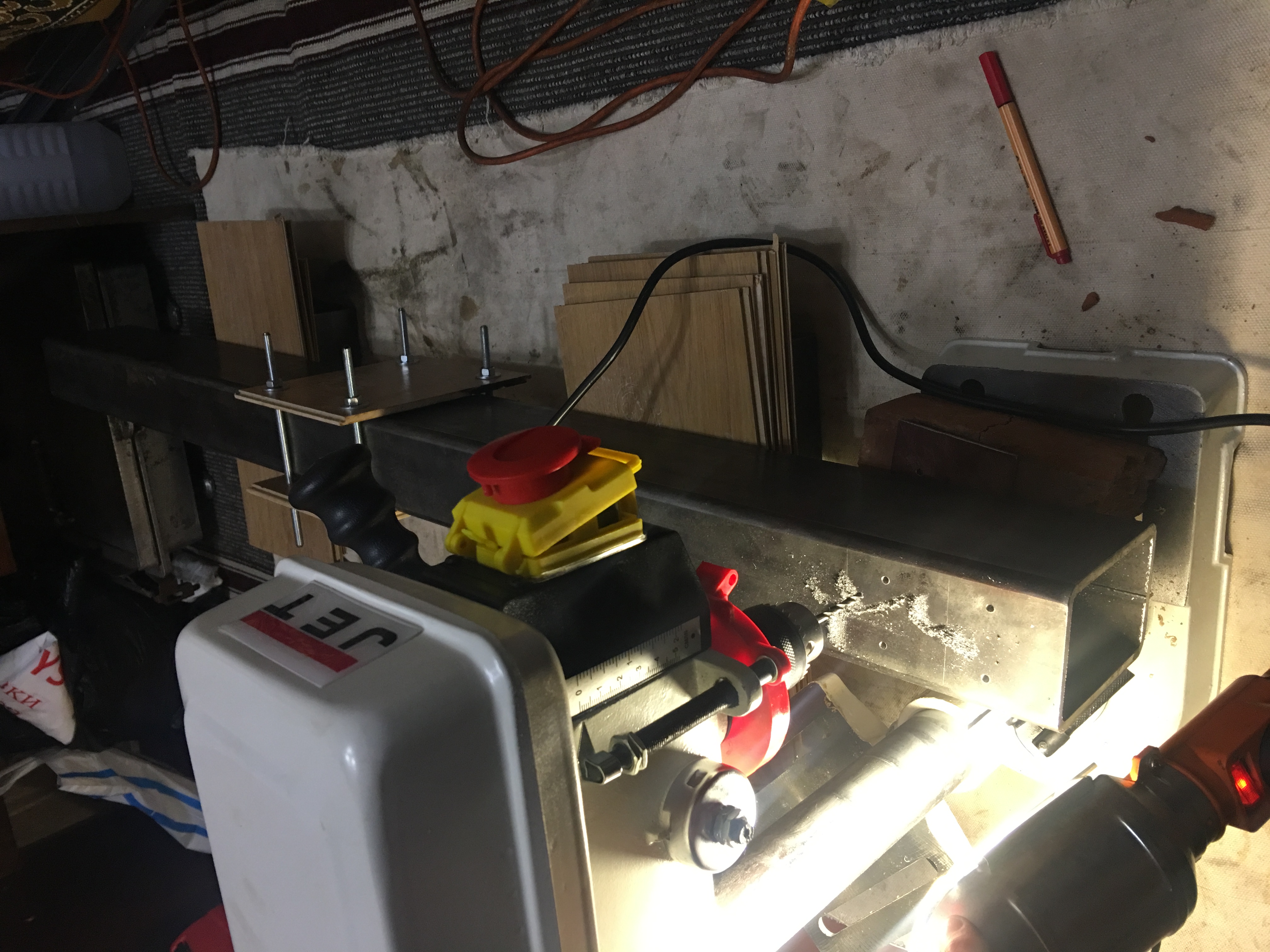 Металл толстый 6 мм. Хотел купить советский станок 2м112, но он очень тяжелый и большой, взял дешевый китайский JET. Обалденная вещь, в 1000 раз лучше чем дрелью.