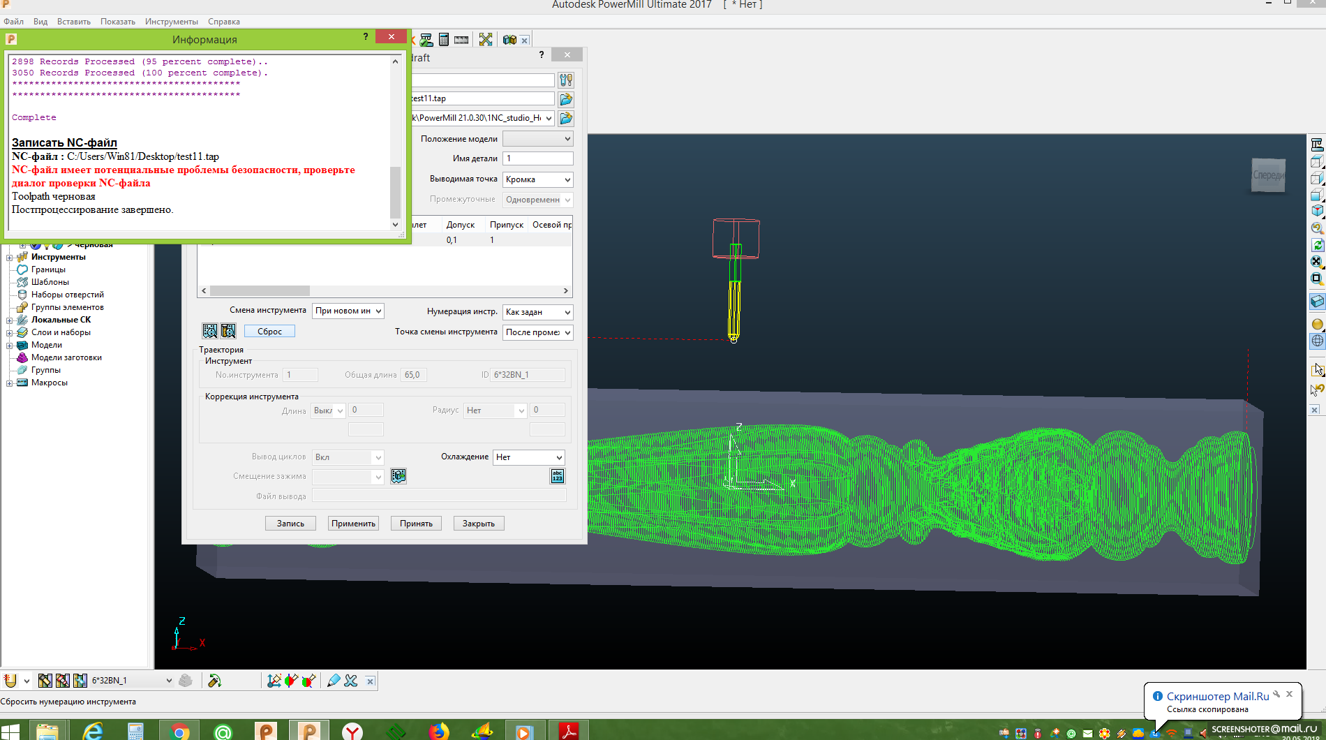 Да, я эту сделал, но там немного поменял (сделал чтобы Была 2-х проходная Черновая обработка)( 1-й треак. с припуском 25мм, а 2-ю с припуском 1-мм)) .... ;) ;) ;) :thinking: Теперь все нормально, Чернов. гравер. сделал... Но каждый раз когда записьваю НС файл после постпроцессирование должен удалить личную из блокнота.....