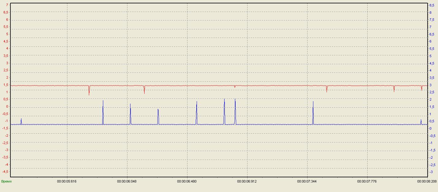по крайней мере не развертку ЭЛТ советского осциллографа вам на мобильник фоткаю) :thinking: Снизу секунды. Это фотка с самописца. думаю не столько важна длина импульсов а то что они есть.
