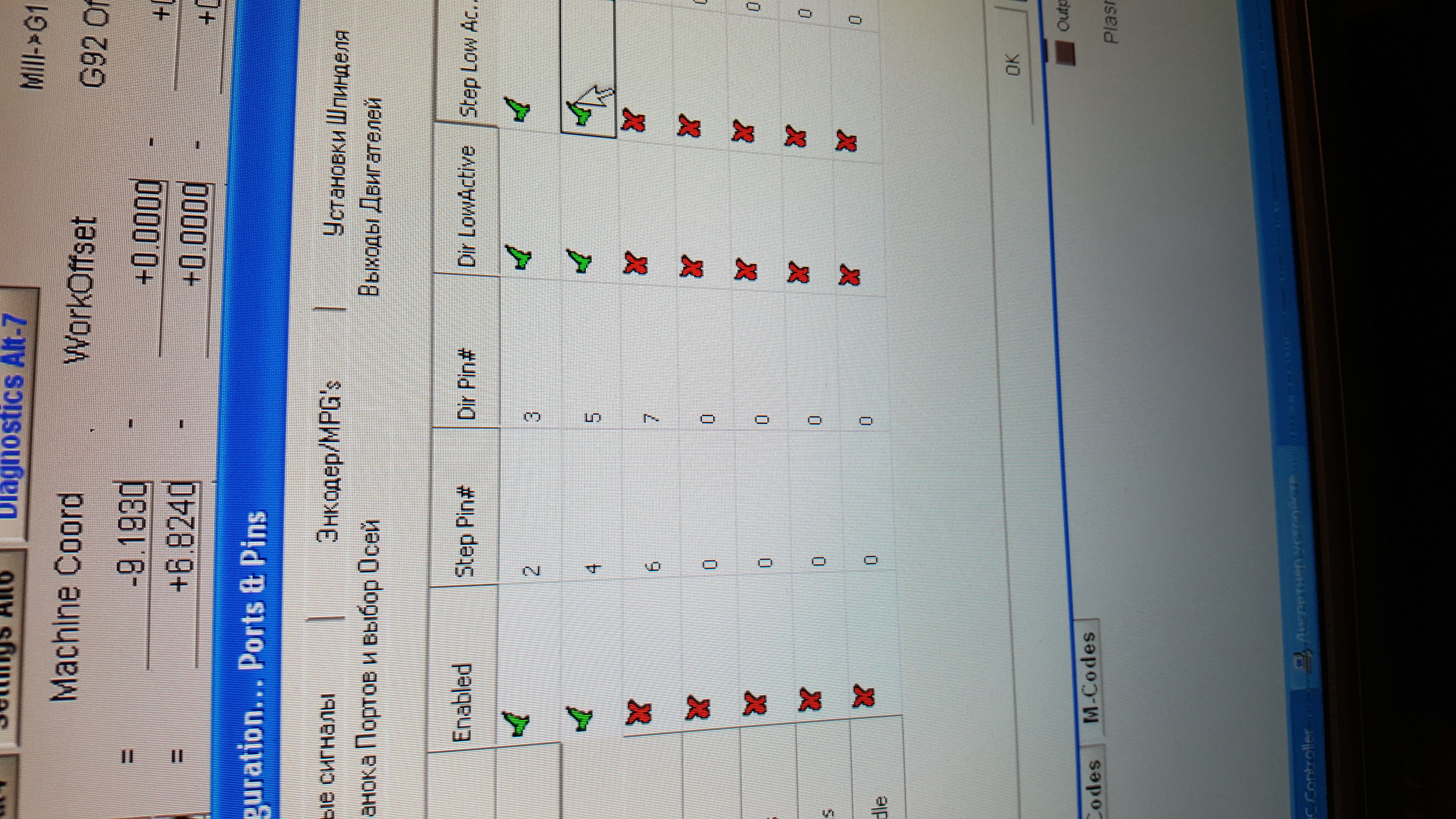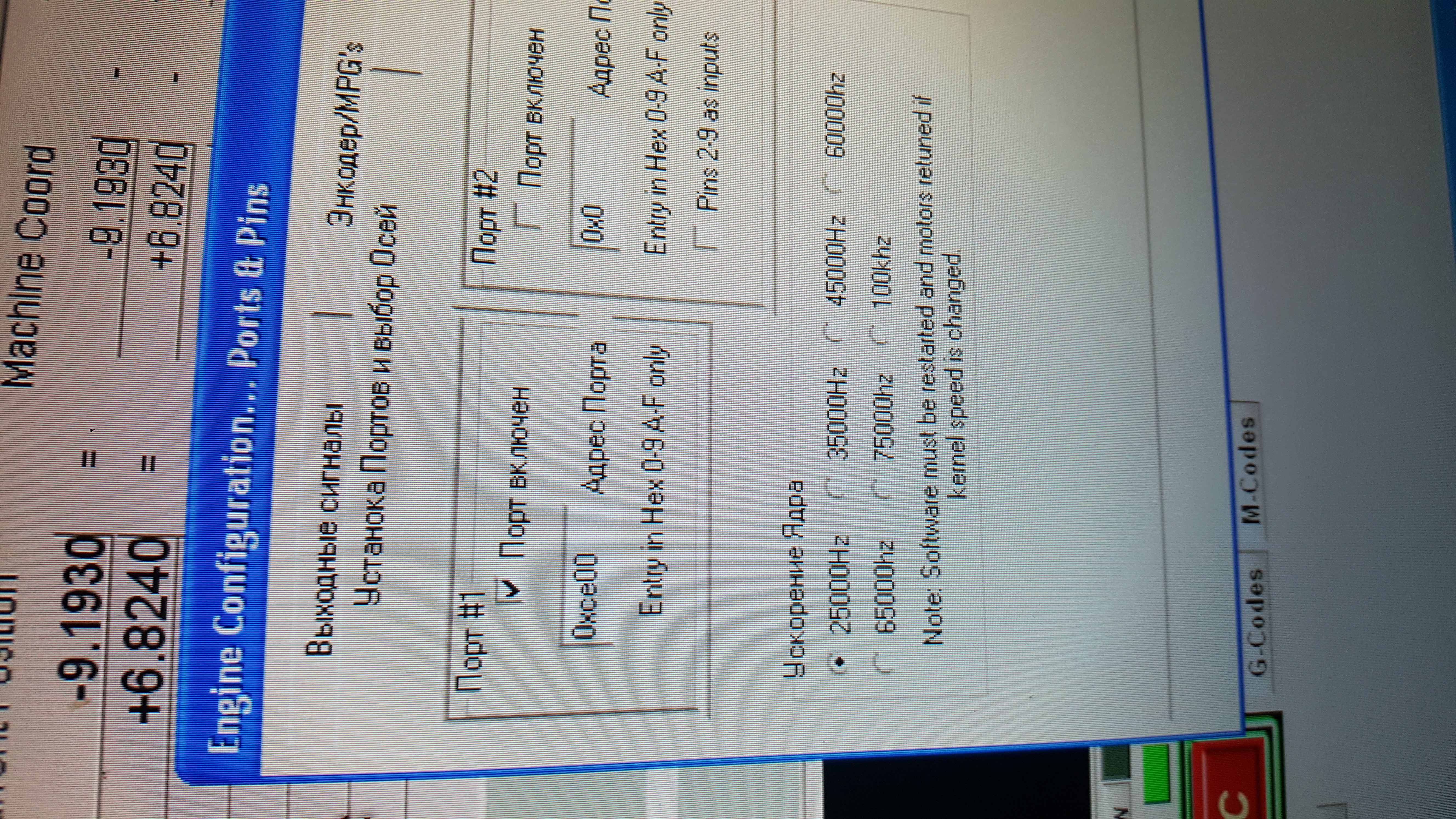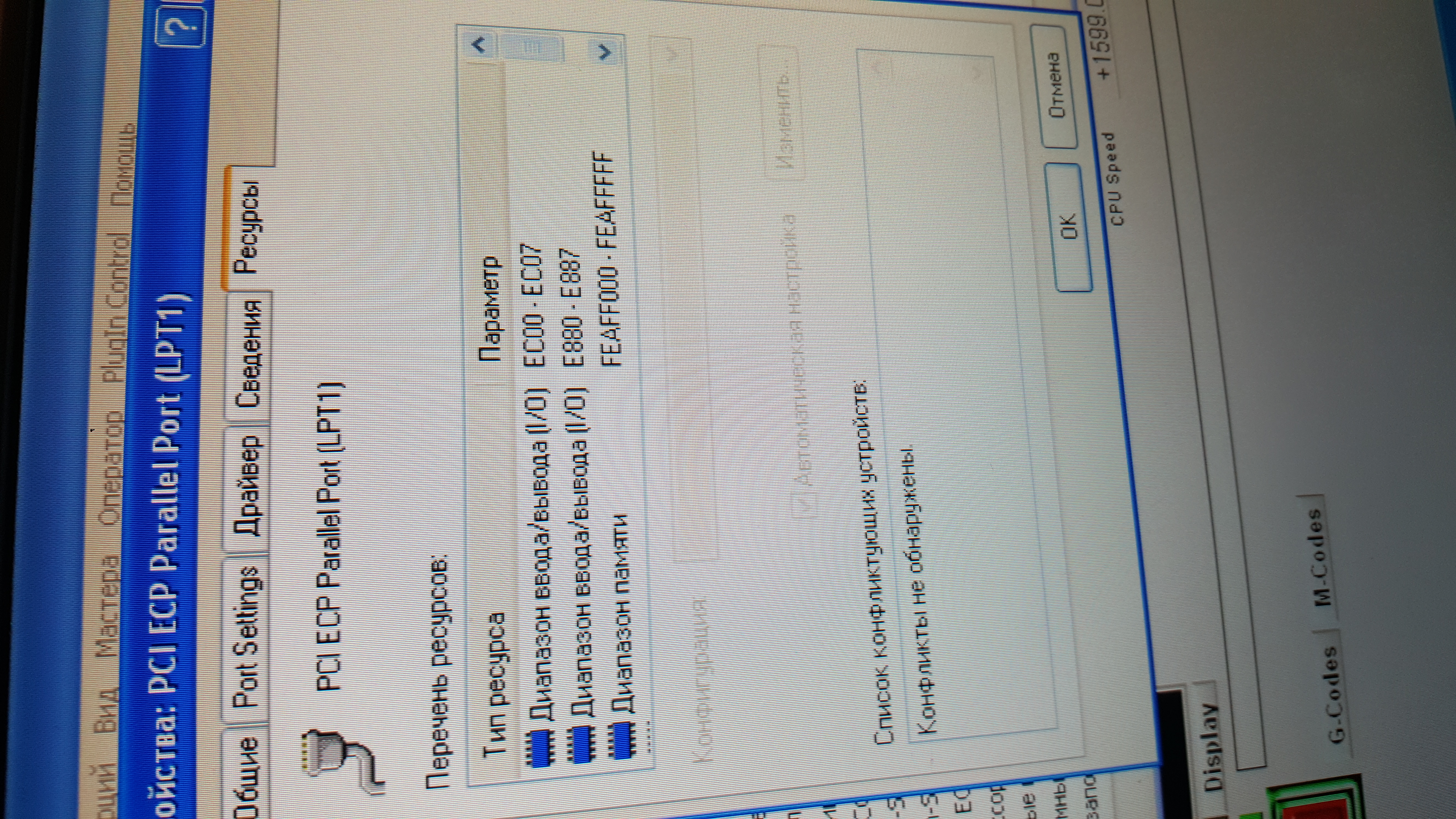 А изменится ли что-то если прописать в маче адрес 037F? Попробуйтеmd01 писал(а):А какие там адреса указаны у лпт в диспетчере устройств?tsups писал(а):Прога эта есть. Но не понял что она показывает. При нажатии кнопки включить все ,загораются красным все верхние кружочки,которые были неактивны. Изменений не заметил никаких. LPT встроен в материнку, В диспетчере устройств,только один порт.NikolayUa24 писал(а):http://www.cnc-club.ru/forum/viewtopic. ... 20#p305520.