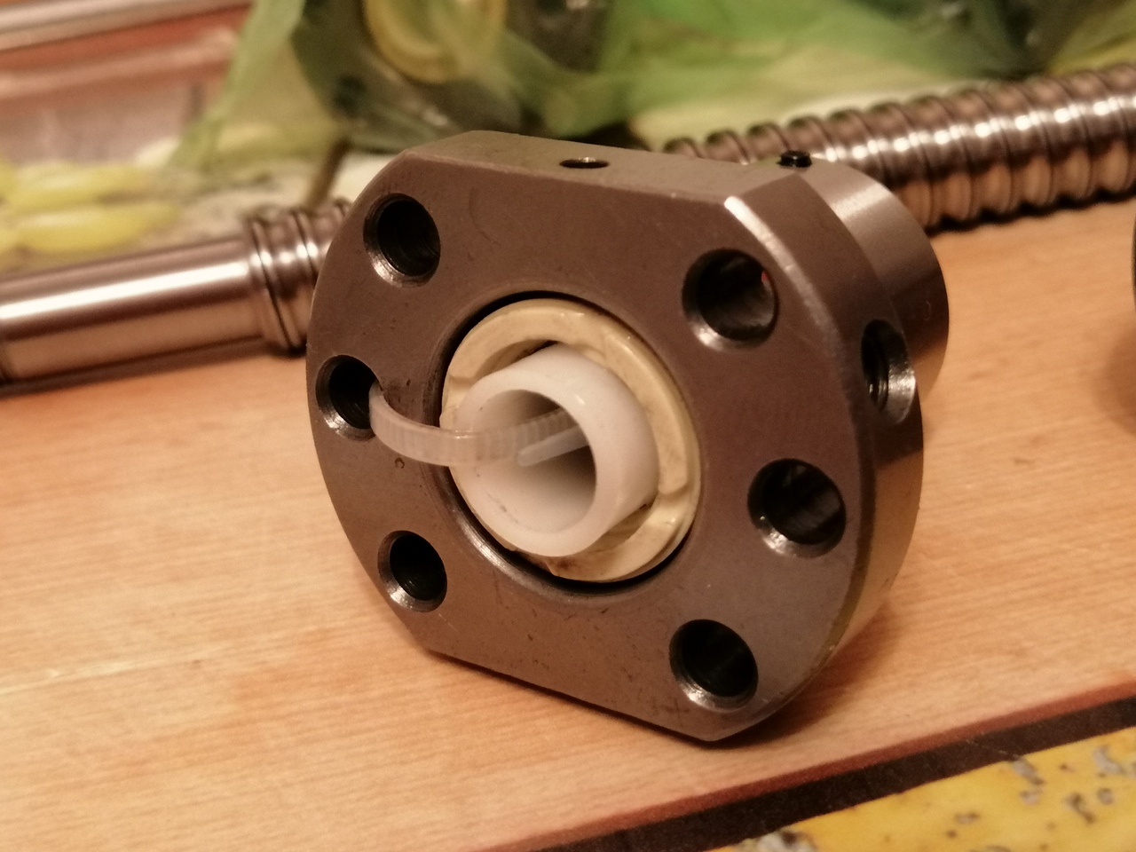 Между дел накрутил гайку CNC Tehnplogy на винт и немножко обалдел- болтается она. Радиальный люфт больше десятки, осевого не наблюдается, но и сие не есть норм. Понятно, что можно заменить шарики, но продавать такое ..извините, это сверх всякой наглости. У аналогичной ноунейм китайской швпхи ничего подобного не наблюдается, вот они- китайская на заднем плане.