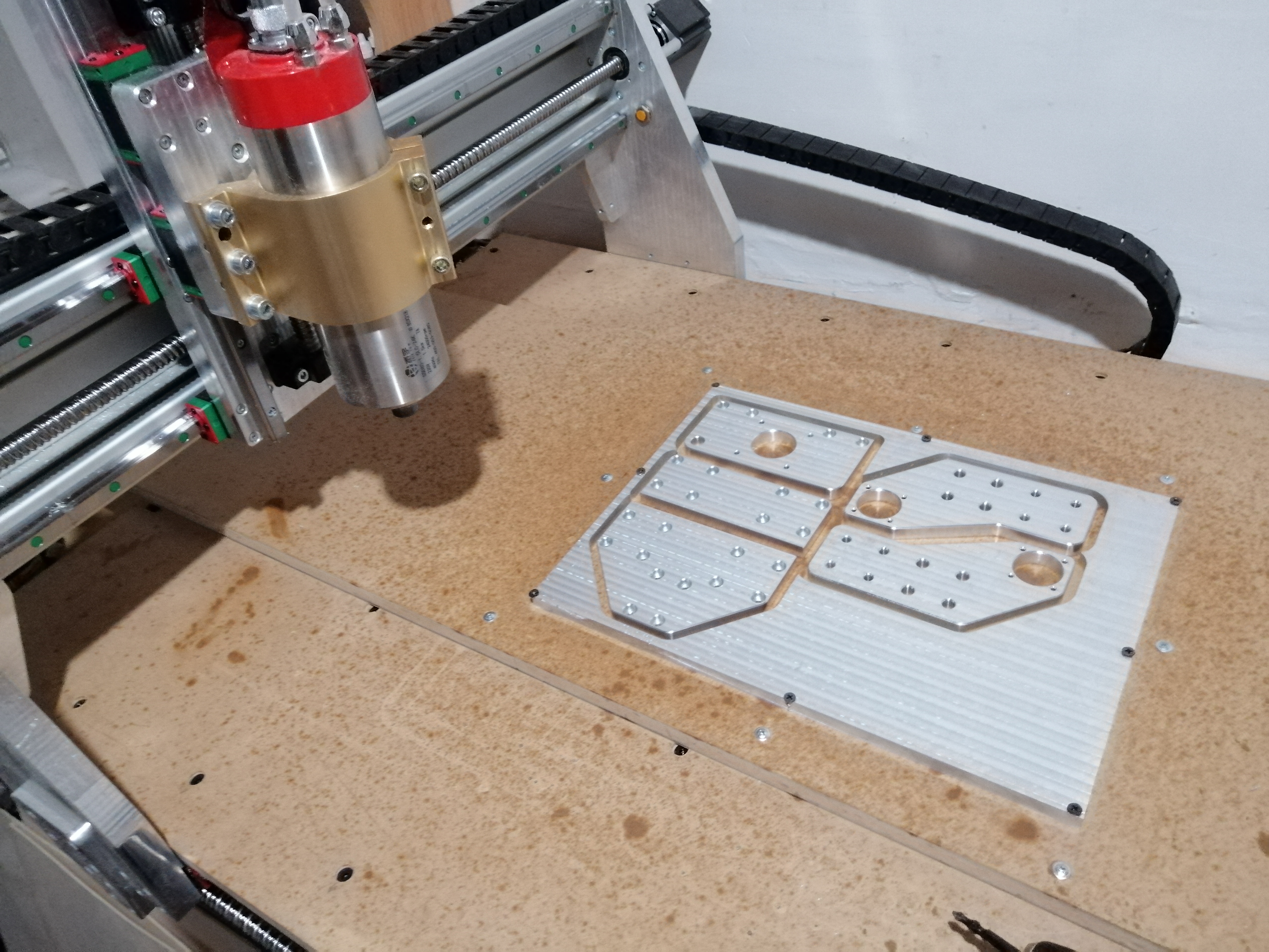 Не улетит. Предварительная обрезка контура с недорезом в 1мм, потом деталь притягиваю саморезами к мдф, после- окончательная обрезка.Gestap писал(а):не страшно что какая нибудь деталь улетит?!