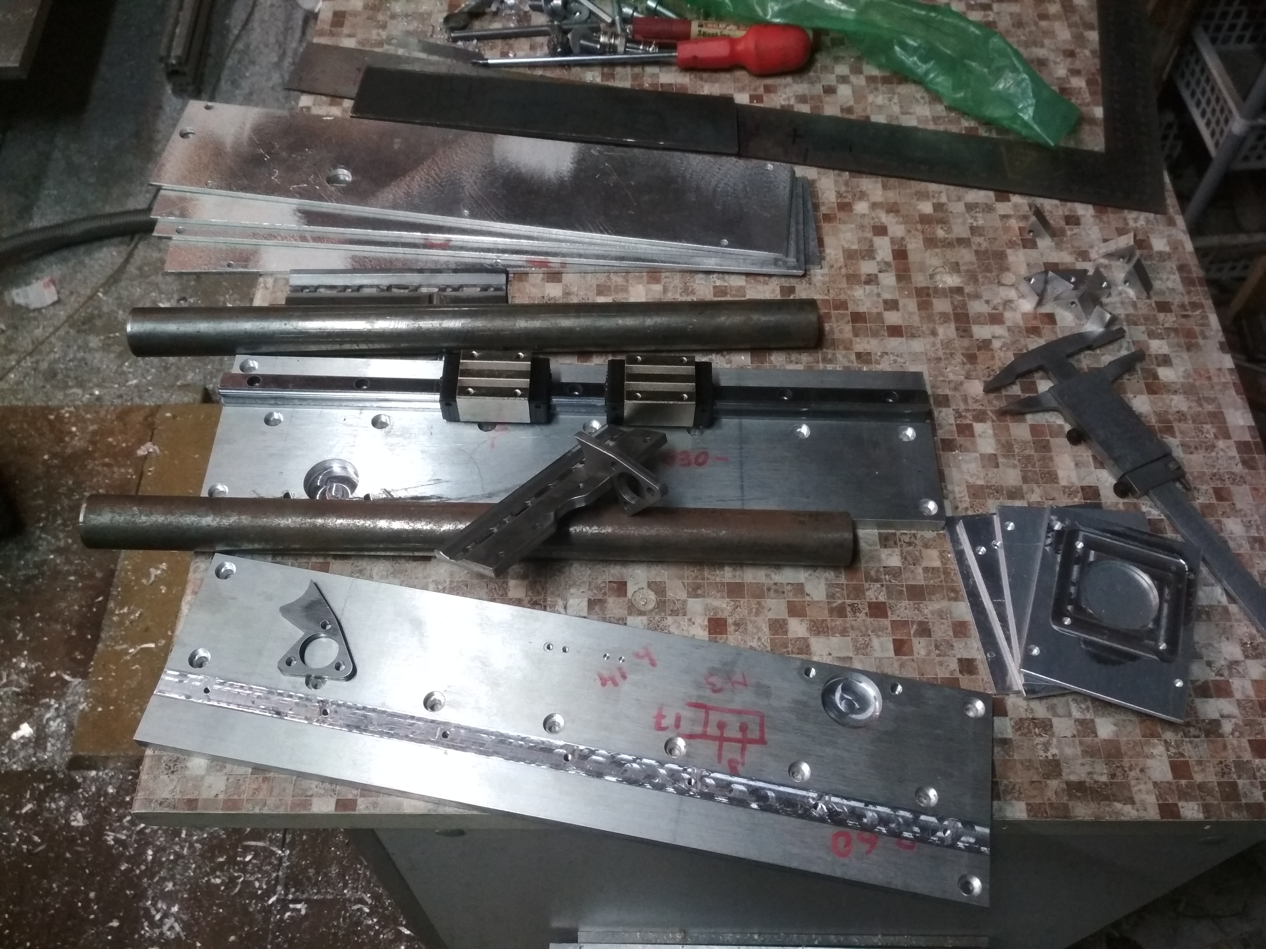 Наделал кучу деталюшек из непривычной мне сталюги, зачистил все и попробую сегодня все это дело спаять и начну уже собирать потихоньку. Почему пайка , а не сварка? Для минимизации поводок и остаточных напряжений, да я знаю, что от пайки тоже утягивает, но если использовать не так много припоя, они будут незначительны. Да и всегда хотел попробовать этот вид соединения. Целую неделю уже убил на этот проект.