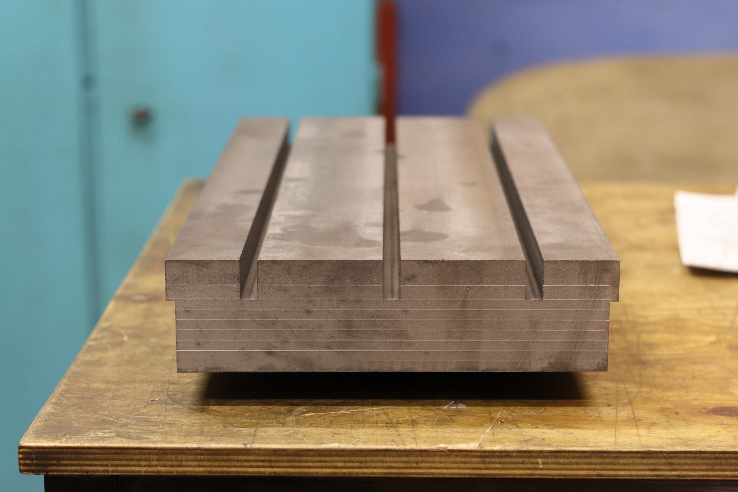Итак, отлили пробные детали. Отфрезеровали вчерновую стол. Из видимых дефектов- проливы в некоторых местах, со стороны рёбер. Но вроде не критично.