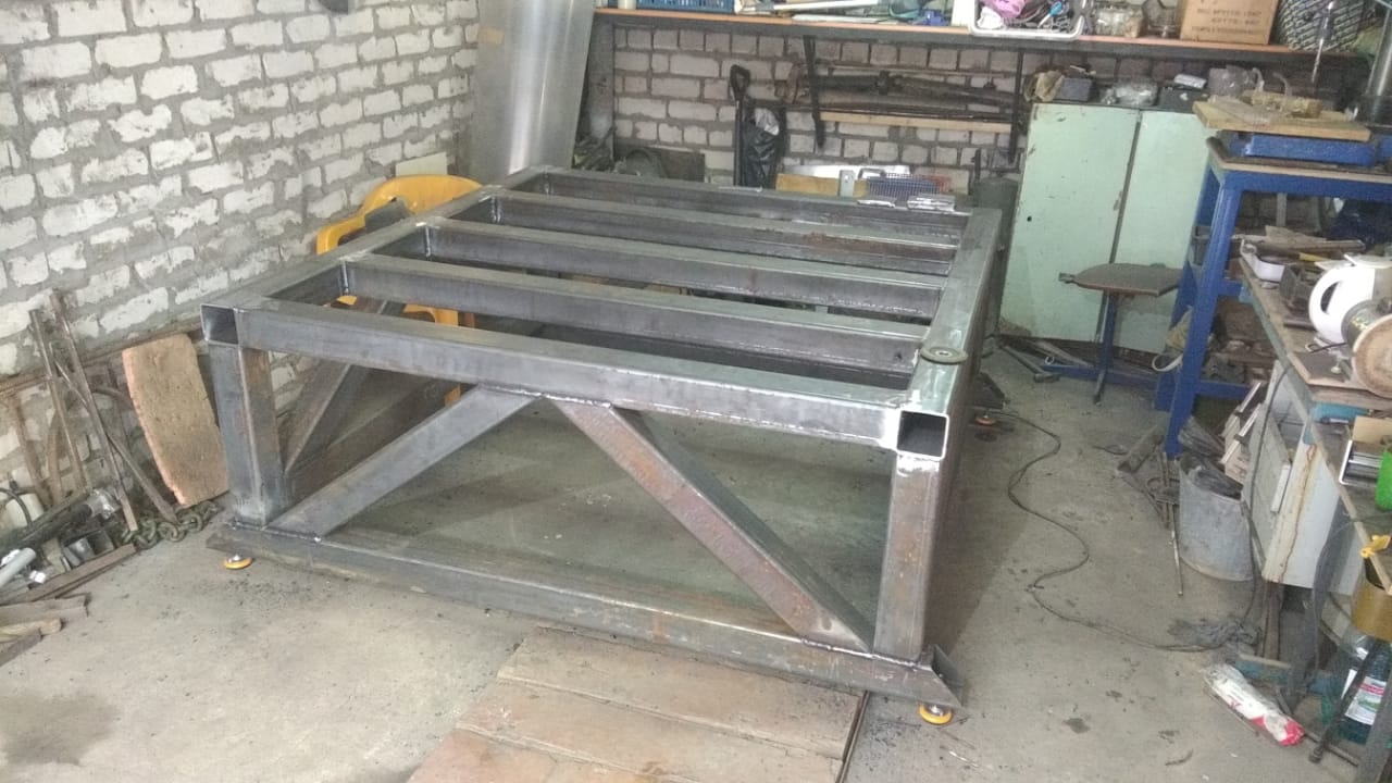 Сегодня почти закончили варить станину, осталось отфрезеровать монтажные пластинки в точный размер и приварить их.