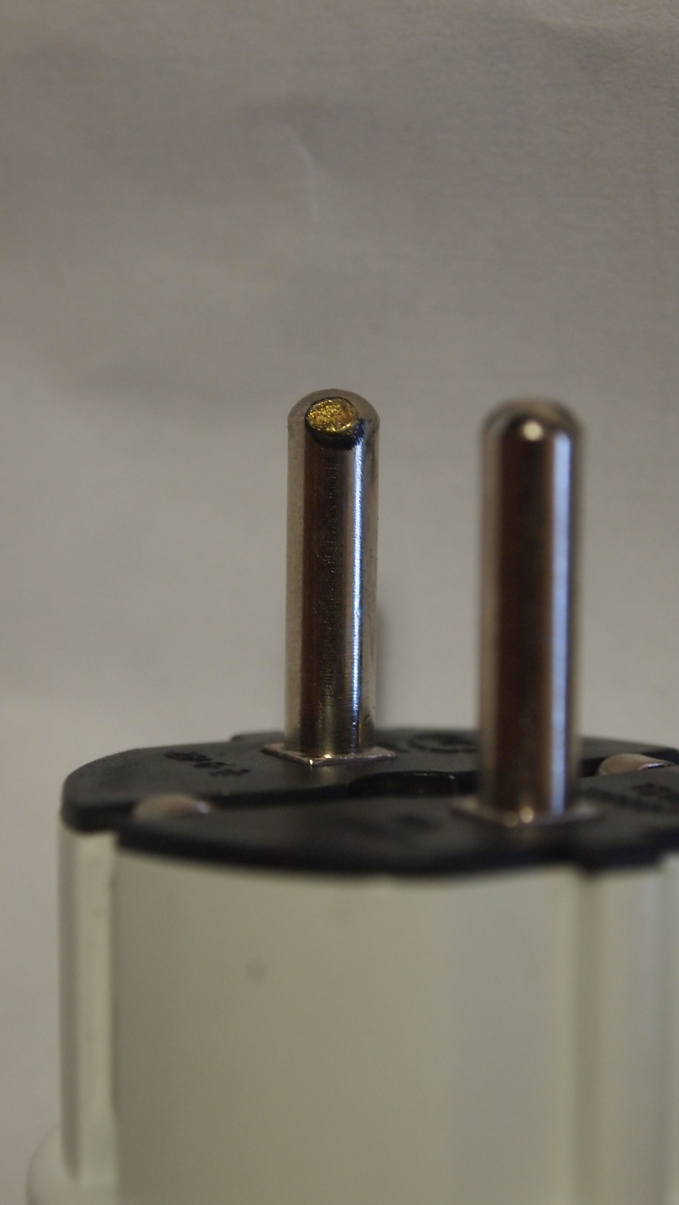 вот что стало с вилкой при последнем подключении с автоматом на 16 ампер (вилка тоже на 16, новая была)