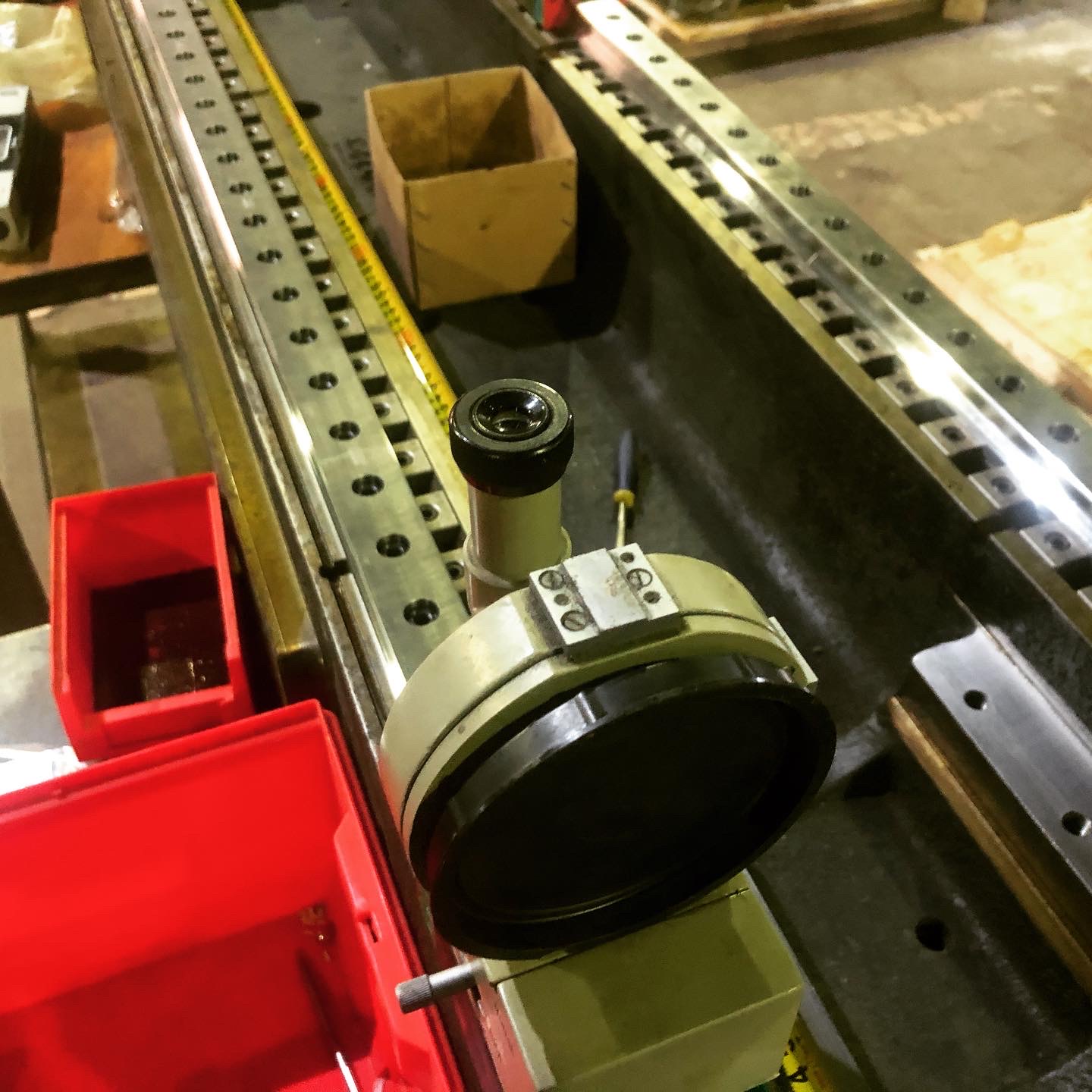 За геометрию боялись зря. Пока обе оси в сотку по всей длине в обоих плоскостях. Маленькая ось даже в полсотки реально влезла. У длинной немного края приподняты, видимо для компенсации провисания под весом стола и заготовки.