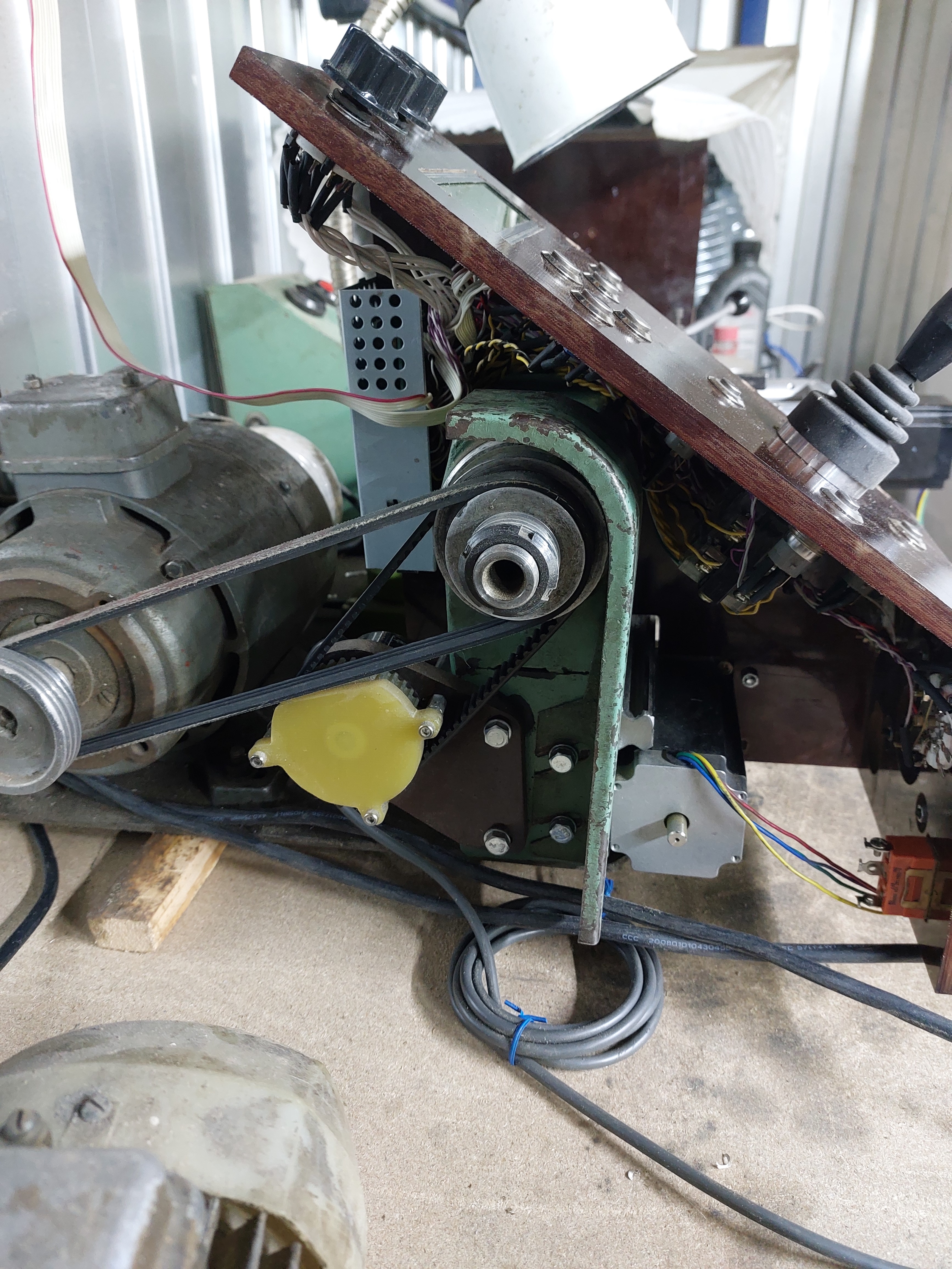 Ну вот ,всё срослось ,все резьбы и конуса, а так же автопроходы и прочие плюшки доступны ! Восьмёрку шаг 1,25 по стали СХС режет на ура ,десятку на пятом-шестом проходе останавливает шпиндель , если так будет нужно ,можно сделать понижайку шкивами и поднять частоту до 75 герц без вреда для мотора.