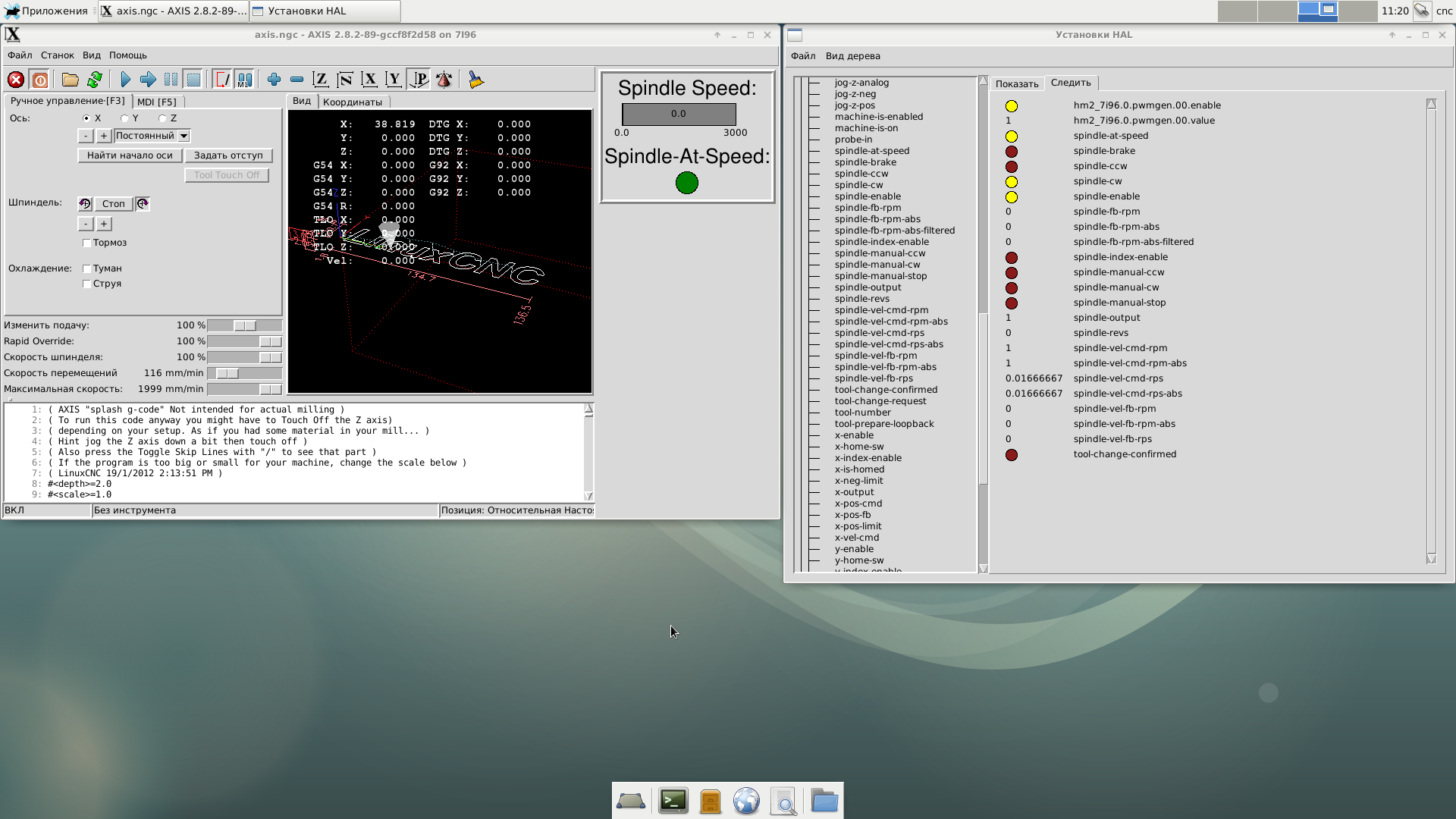 После небольшого опыта с LinuxCnc могу сказать, что он для меня он далеко не прост в освоении. Вопрос надежности LinuxCnc остается для меня открытым. Если он будет четко следовать траектории (G-кода) и командам, без каких либо сбоев, даже если G-код работает несколько суток, то мои усилии не зря.