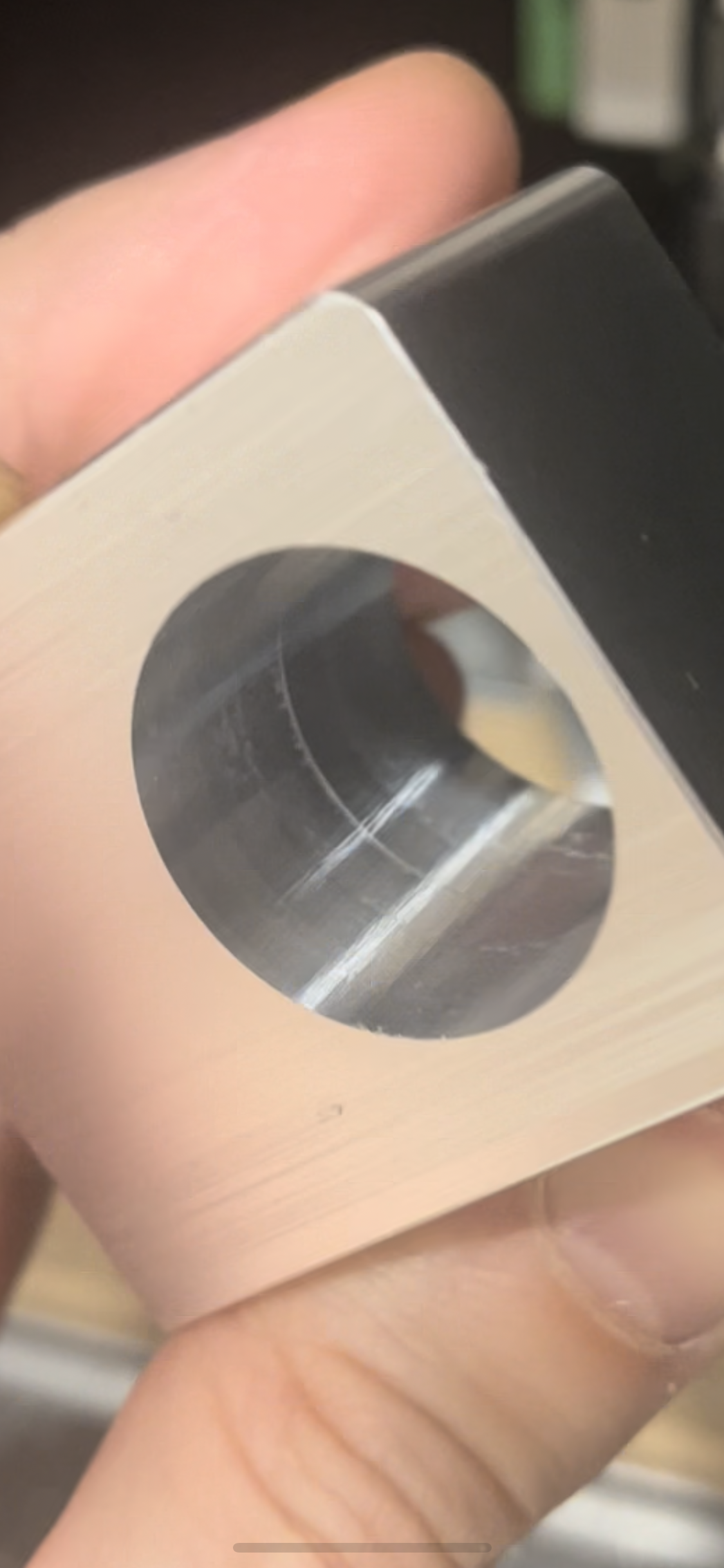 На заготовке видны следы фрезы, если смотреть на отражение света.