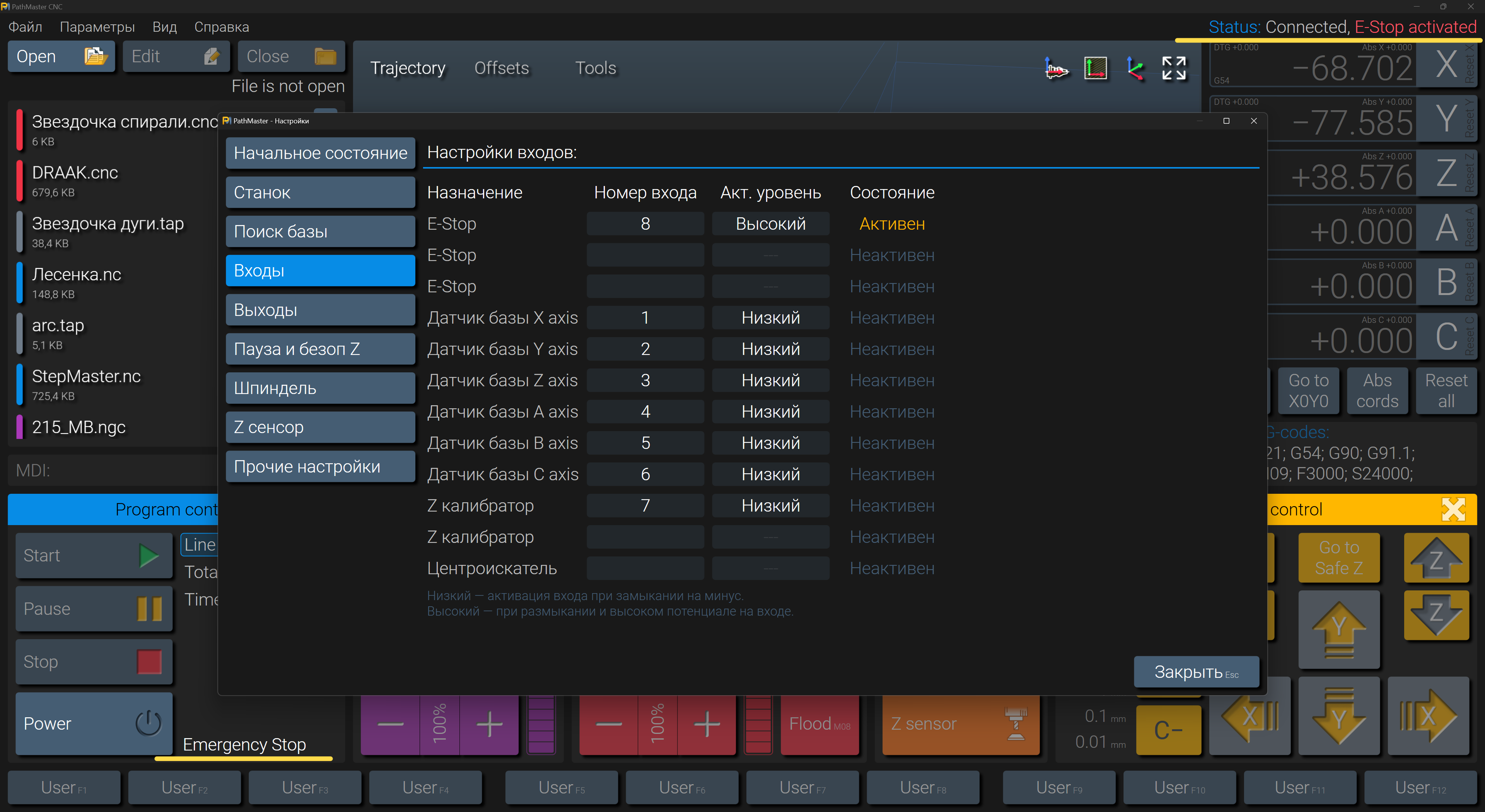 Добавил информацию о нажатом EStop: