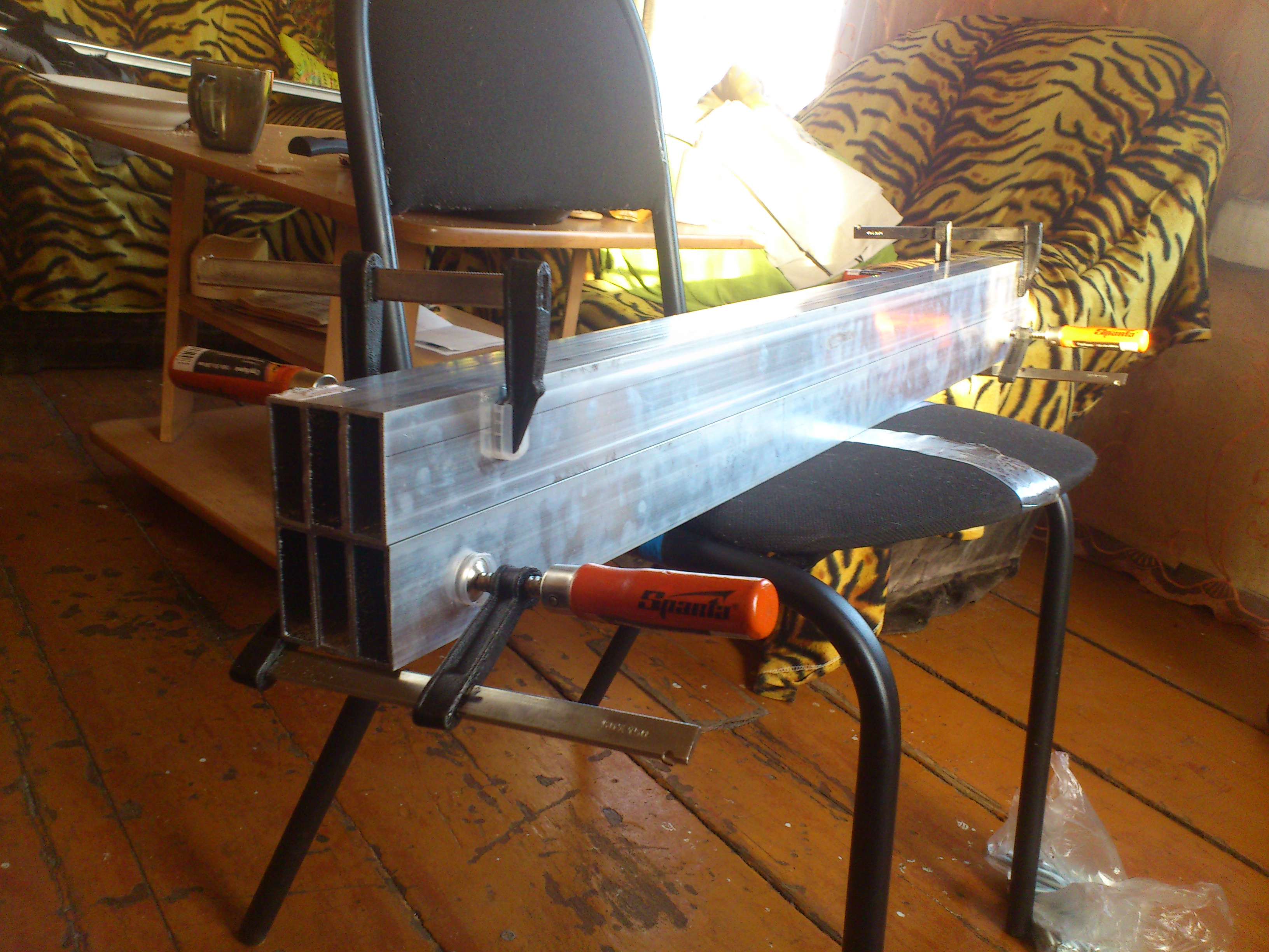 нравится жесткость алюминиевая труба творит чудеса и не надо никакого станочного профиля тем более в моей глуши и слова то такого некто не знает