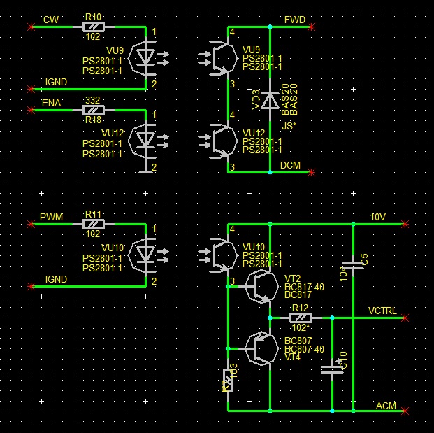 Схема не дорисована, сигнал с элемента И идет на второй оптрон VU12, смотрите предыдущий рисунок.