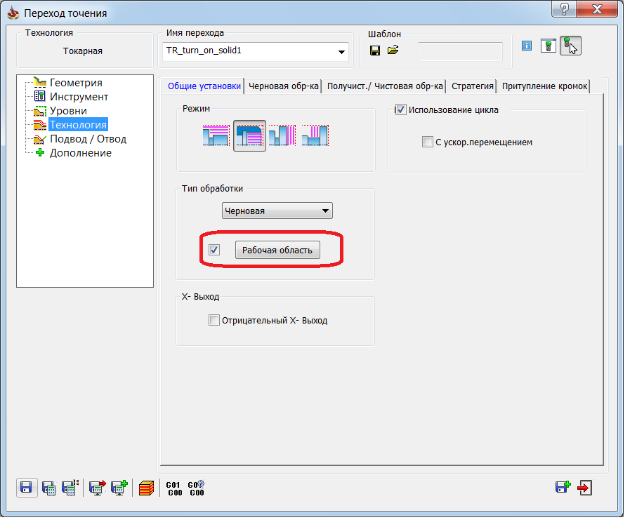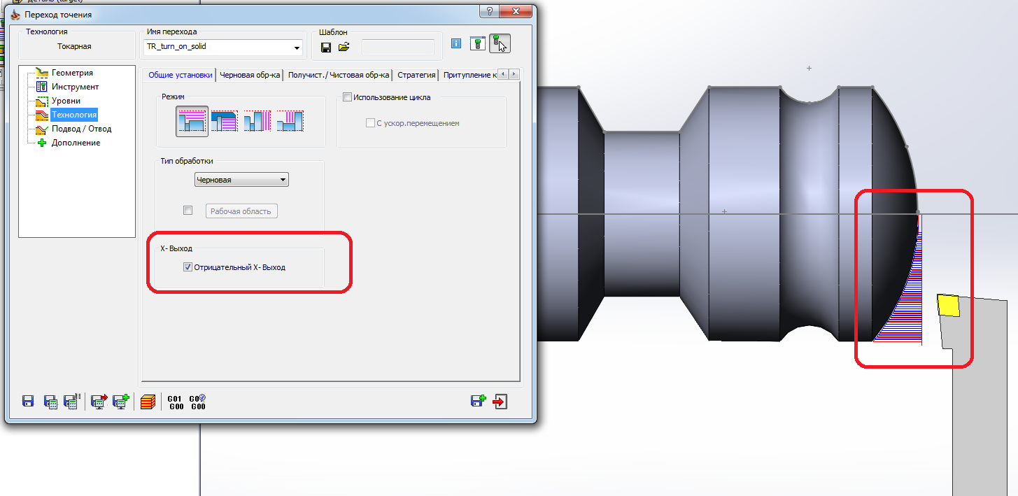 Вкладка в дереве "подвод отвод", поковыряй там настройки.aftaev писал(а):Нужно сделать внутреннюю обработку. В заготовке просверлено отверстие ф25мм для резца. Но засада в том что резец начинает обработку с центра заготовкиТак резец воткнется в заготовку. То что зачеркнуто не должно быть: Попробовал задать рабочую зону, или не правильно или не работает