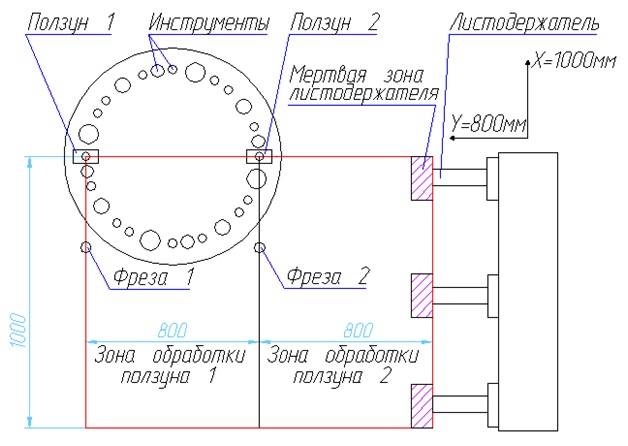 У пресса есть 2 точки удара, правая и левая. На чертеже ползун 1 и ползун 2