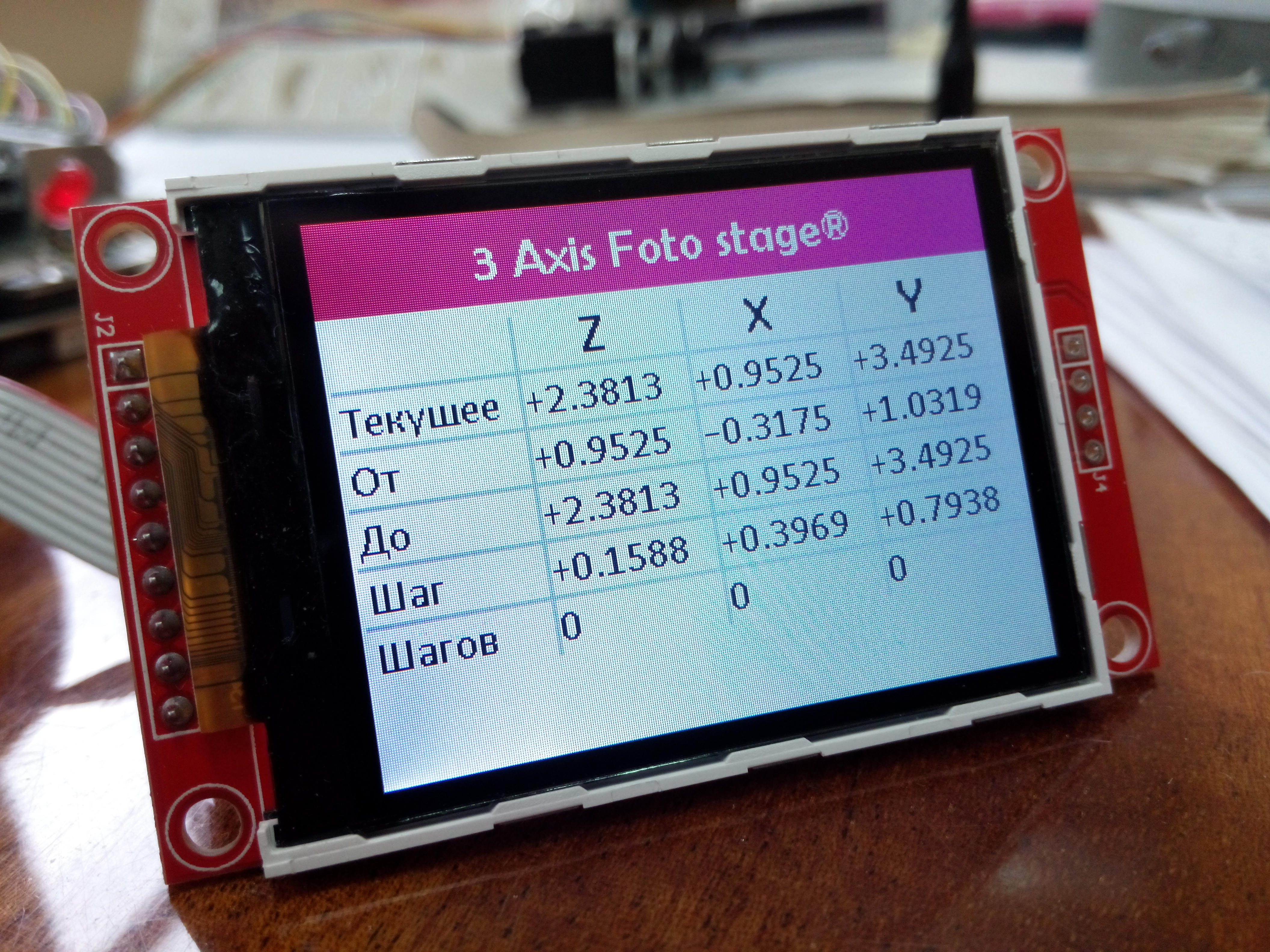 Уже выводится текущая позиция и при изменении идёт перемещение. Все три оси сделаны.