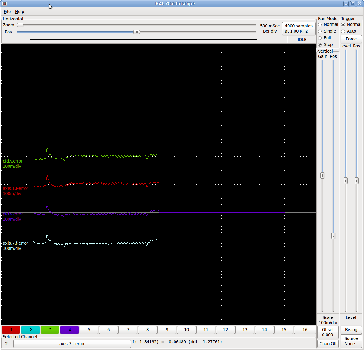 umerov писал(а):Еще заметил - при маленькой скорости pid.y.error, pid.v.error примерно равны egantry.0.joint.00.ferror и egantry.0.joint.01.ferror, но на масимальной скорости различия существенны.