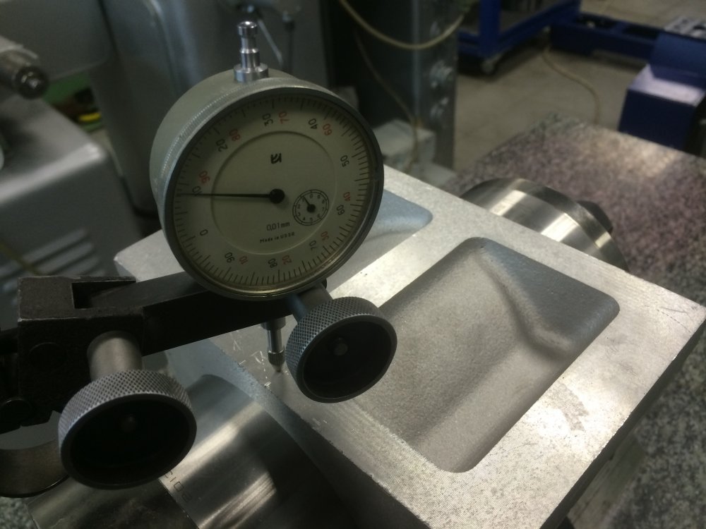 Итоговый разброс 14 соток на длину станка (2м). Планировал уложиться в 0,1мм.
