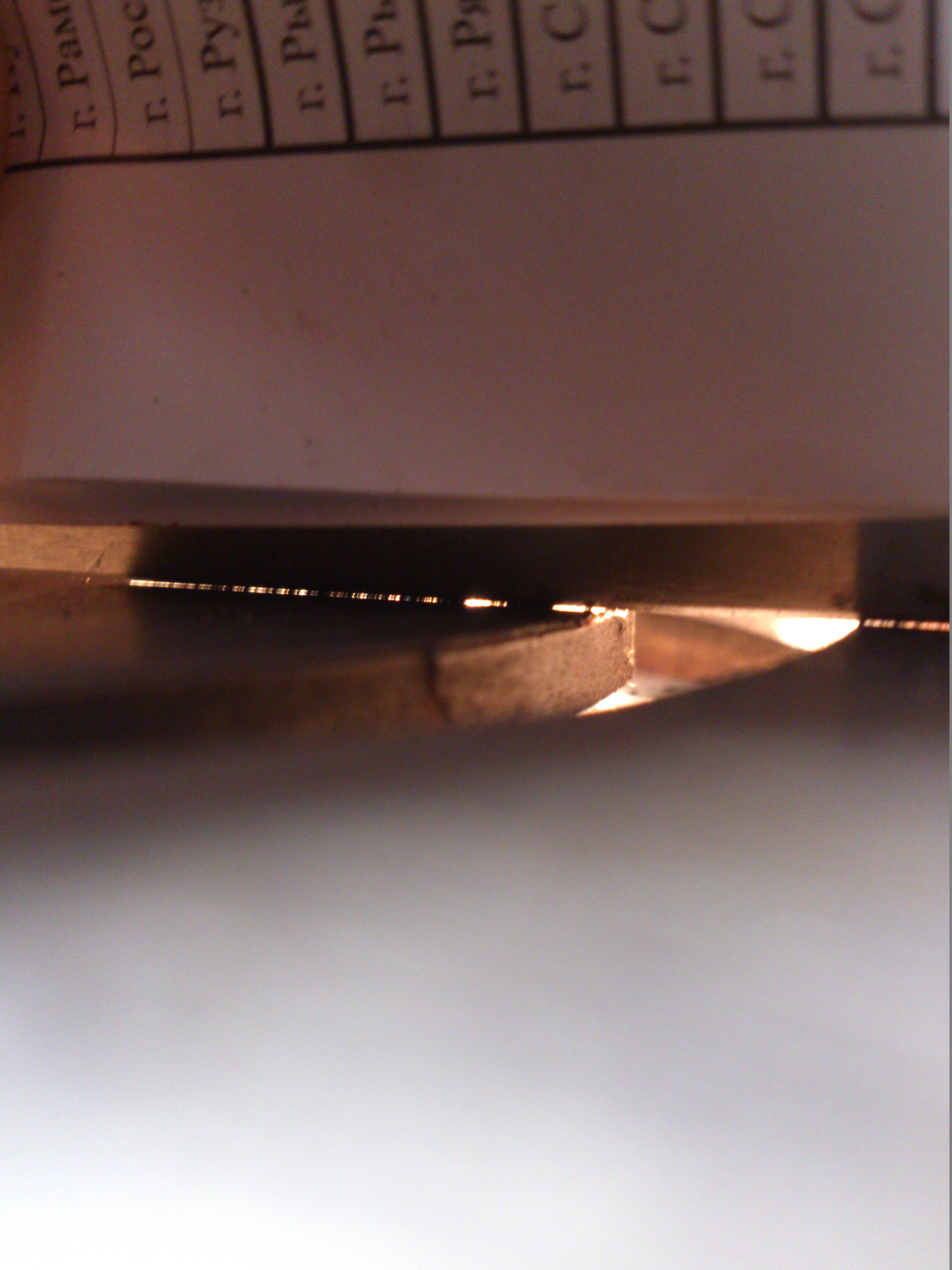 Прогрел, постучал легонько. Потом взял напильники (один злой, второй с очень мелким зубом) и стал стачивать выпирающие части, проверяя результат с помощью планки УСП. Когда осталось совсем чуть-чуть с помощью смазки и той же УСП стал состругивать выступы (кромки УСП достаточно острые оказались и стойкие). Стружка была очень мелкая, состругивал наверное час.