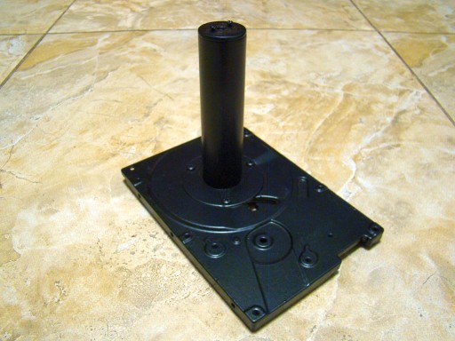На задней стенке сделаны отверстия под кнопки управления и крепление для подставки. Для размещения электроники использован корпус от десктопного винчестера.