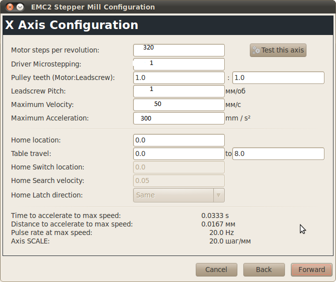 4. стептайм это длительность действующего импульса шага который воспринимает драйвер в маче step pulse (только в маче вроде милиросек. в линух микросек)