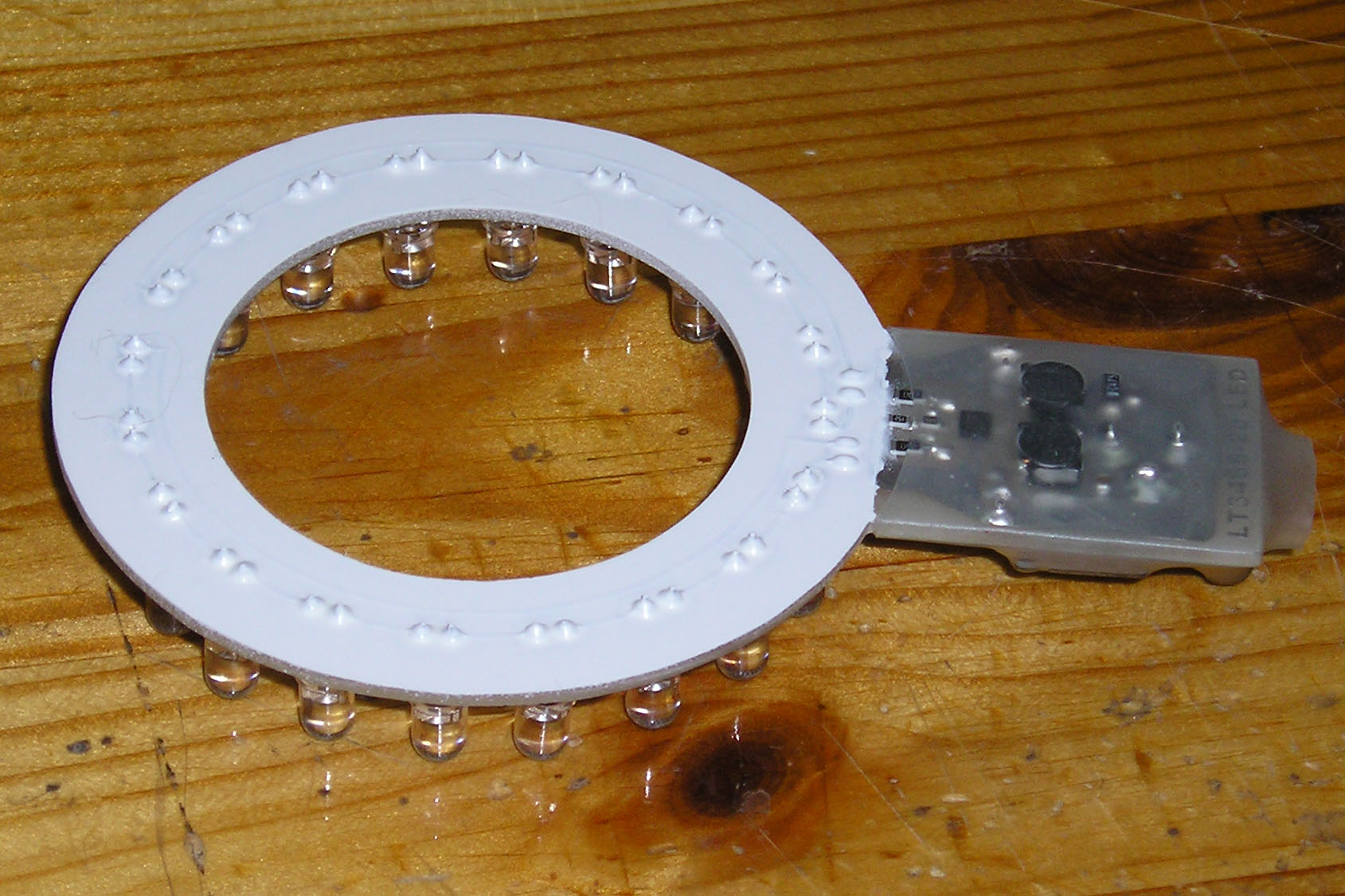 Для защиты электроники и отражения света кольцо покрываю белой краской, а на управляющею часть одеваю термоусадку.