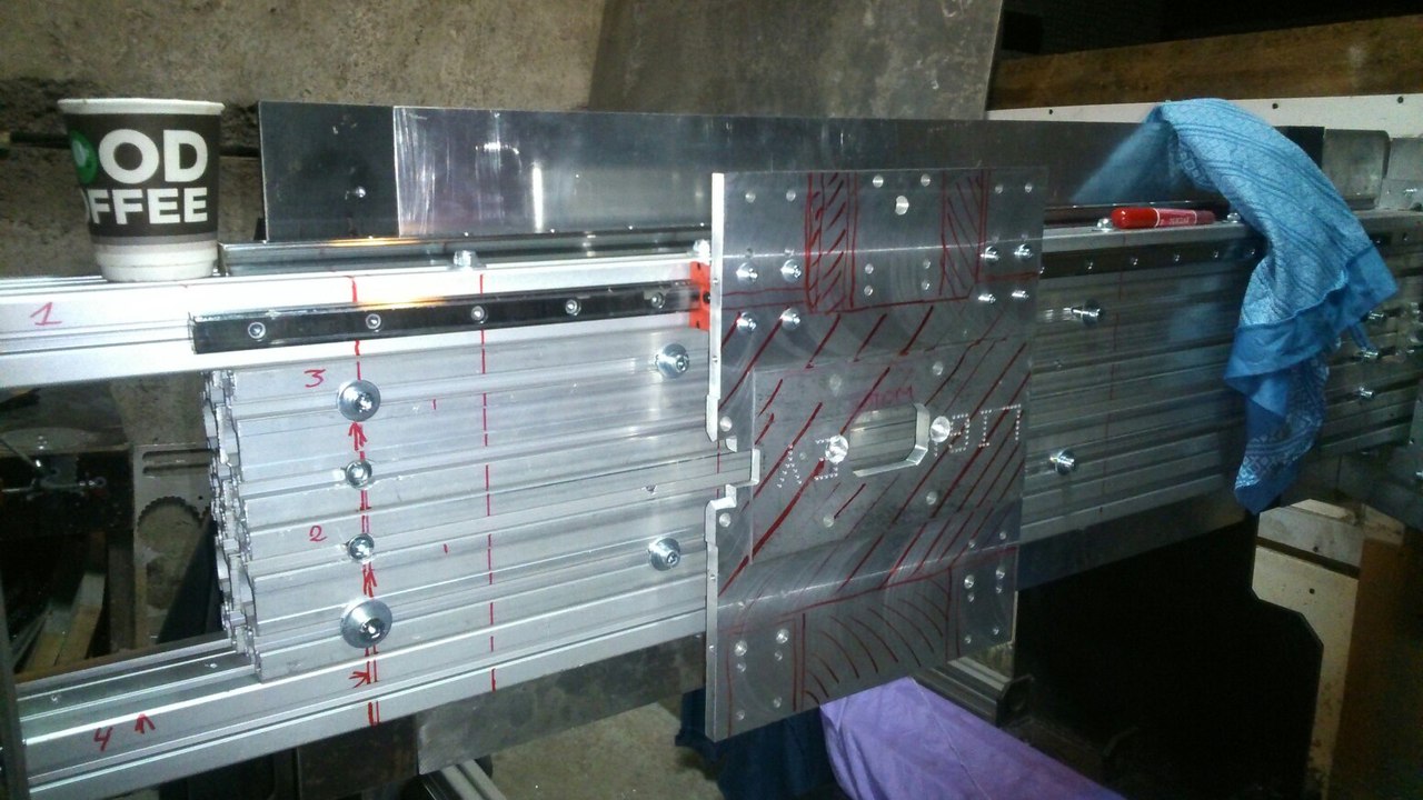 Было принято решение сфрезеровать все мешающее мясо и оставить только платики под каретки, и их уже потом зашлифовать профилем. Повезло, что материал плакирован и на нем очень видна разница где обработано а где нет, пол дня возился почти убил наждачку, и все впустую. Пришлось под это дело еще палку профиля определить.