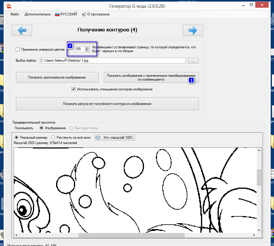 Получение контуров из рисунка состоит из нескольких шагов (один из них, преобразование в 2-х цветного рисунка, когда яркость от нуля до 255 делиться коэффициентом на 2 части, всё что до коэффициента черный, после белый):