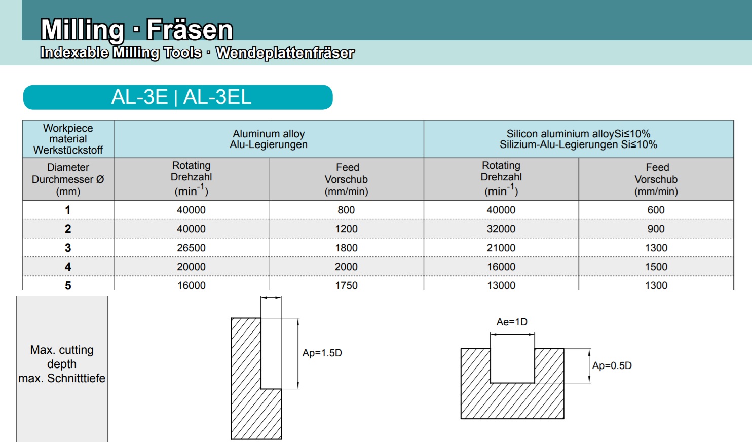 MaksSavchuk писал(а):Например https://www.zccct-europe.net/web/docume ... ENG_DE.pdf страница 40 - режимы для трехзубых фрез по алюминию.