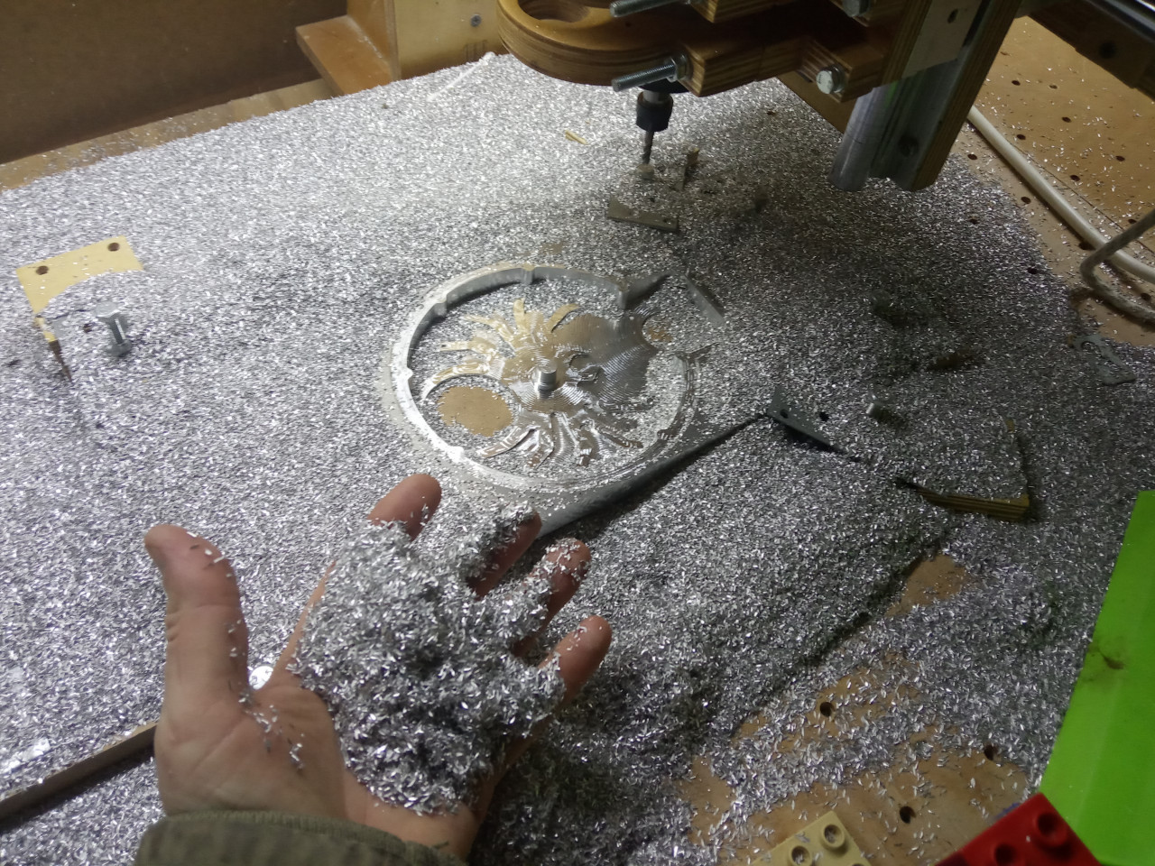 Без нее от станка вообще отходить нельзя и постоянно надо слушать, налипание сразу меняет звук. И в принципе драть мясо черновым проходом выгоднее одно или двухперыми фрезами. У меня одноперые ни разу не забивались а вот трёшки... Последний раз подумал ну вроде немножко осталось, режет мягко и перестал керосинчик подавать. Через 30сек. фрезу 6ку из плиты выковырять не могли.