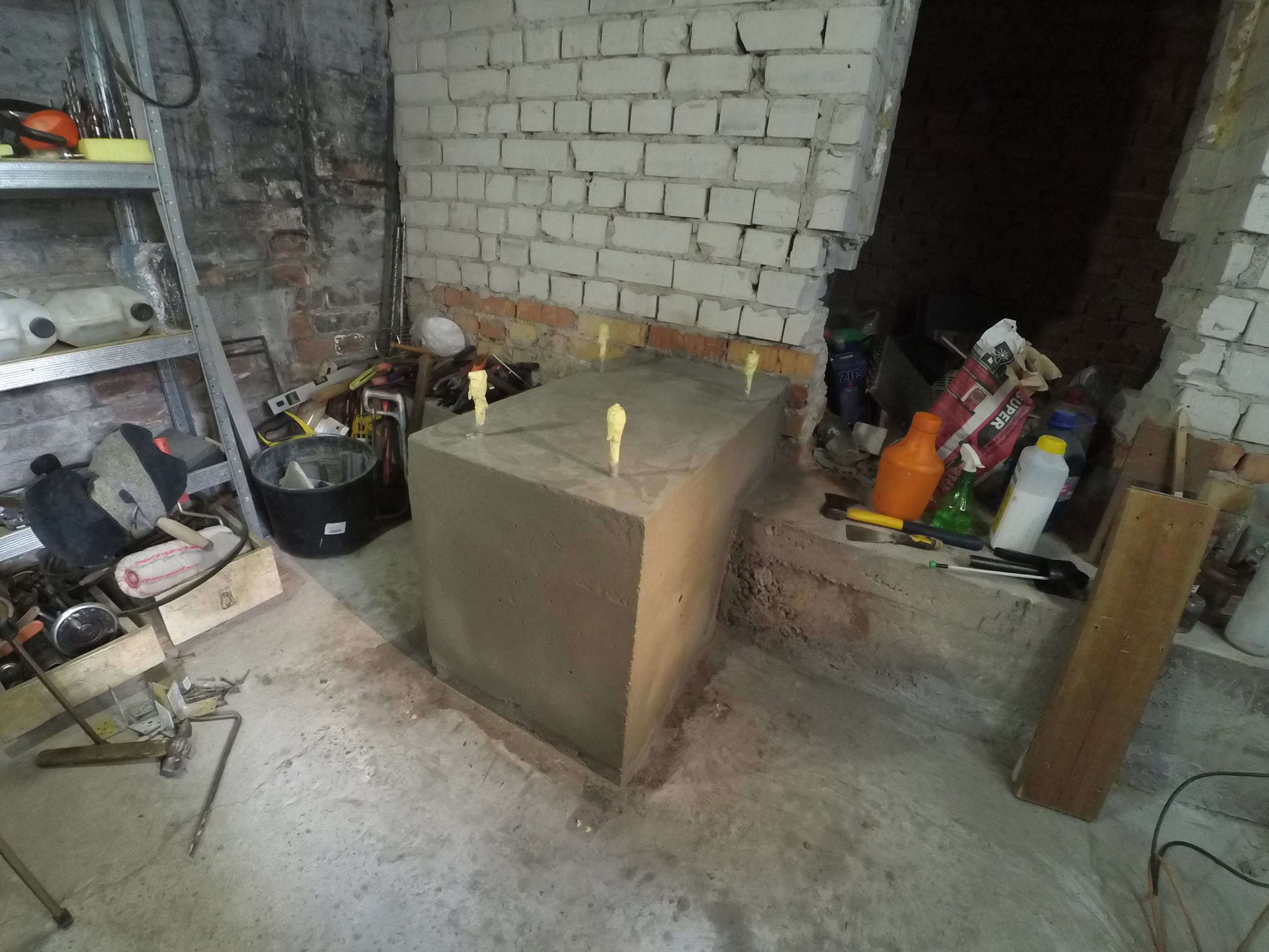Залил около 700 кг бетона, получились вот такая тумба под станок