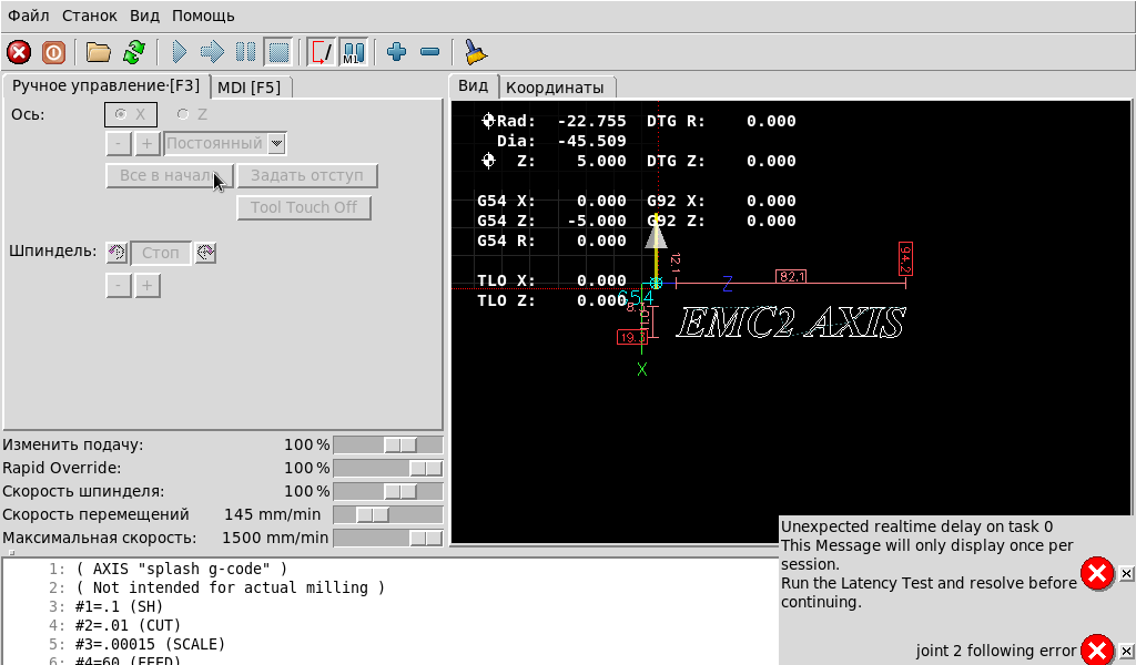 Подскажите пожалуйста, вот была настройка для токарного и по оси Z выдает ошибку, хотя там шагов меньше, чем по Х.